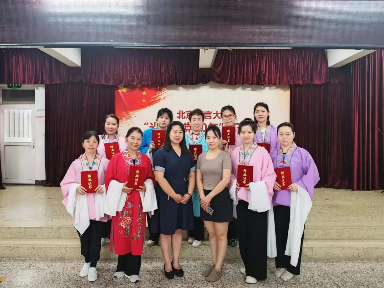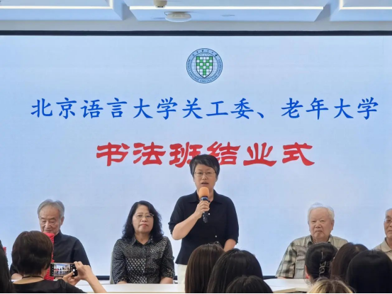 为丰富老同志的精神文化生活,推进老年教育高质量发展,进一步传承和弘扬中华优秀传统文化,国家老年大学北京语言大学分校(以下简称“北语老年大学”)于2024年春季学期精心策划并开设了系列传统文化课程。经过八周的深入学习与实践,篆刻、书法、京剧与八段锦等课程圆满结课,并与关工委课程班共同举办了结业式,离退休工作处党委书记崔克娟、副书记阮晓曦、副处长金尧出席结业仪式。篆刻班、书法班、京剧班和八段锦授课老师及学员全体参加仪式。