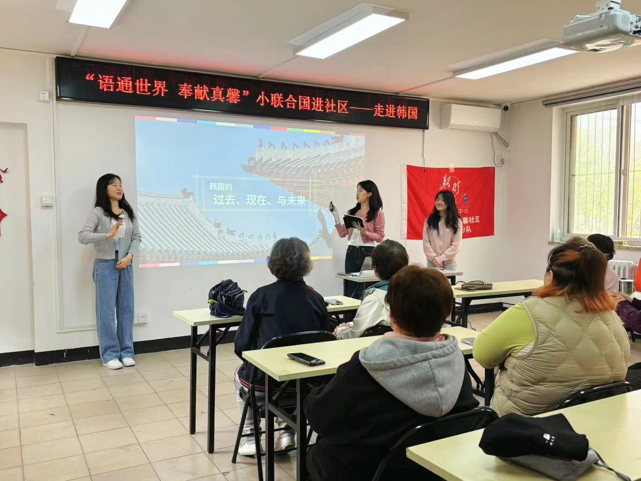 该项目由“小联合国”进校园、进社区、进赛会三部分组成。“进校园”活动包括“七彩课堂,心系世界”中外学生支教活动、“云上传心”云支教活动、中外学生“秋风扫落叶”活动等。“进社区”覆盖科馨社区、逸成社区等,逐步扩大影响力;“进赛会”则将中外学生派往中关村论坛、世界青年发展论坛等大型赛会提供保障服务。