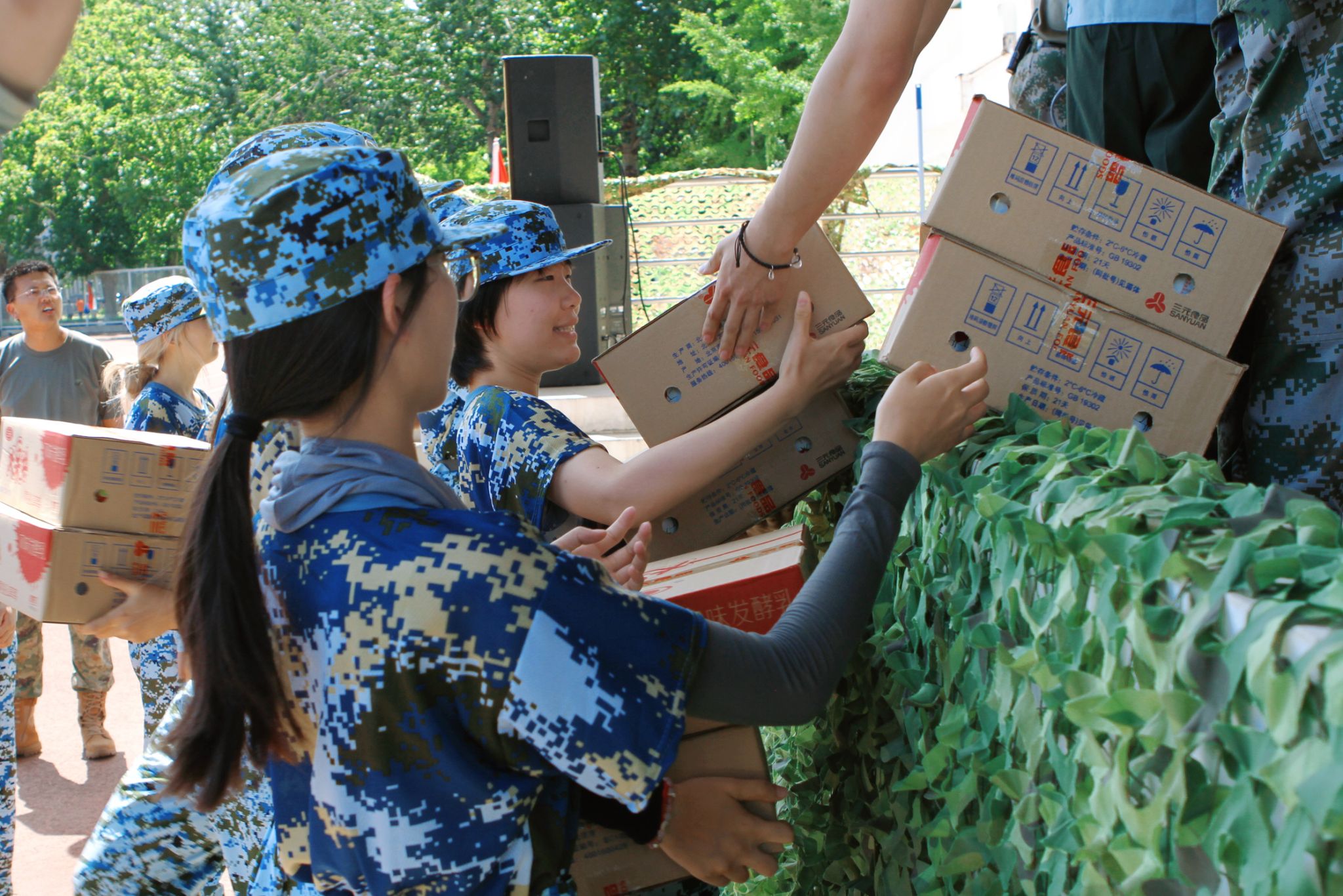 此次慰问,后勤服务集团为参训师生准备了酸奶和巧克力派。在教官的组织下,同学们有序逐一领取慰问品,脸上洋溢着开心的笑容。