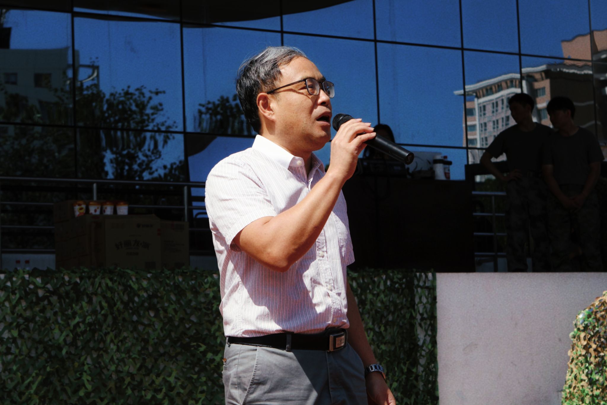 谢刚老师对教官、工作人员和参训同学表示了热情的问候。他表示,军训期间,后勤服务集团全力做好各方面服务保障,食堂提前开放窗口,为同学们准备营养丰富的饭菜,浴室延长开放时间,楼宇、物业的工作人员及时清理操场、体育馆和校园卫生,为同学们提供良好的训练环境,同时,微信公众号“北语后勤”24小时倾听大家的心声,并根据大家的建议努力改进工作,希望同学们在学校的保驾护航下通过军训加强锻炼、磨炼意志,在未来的学习生活中不断进步!