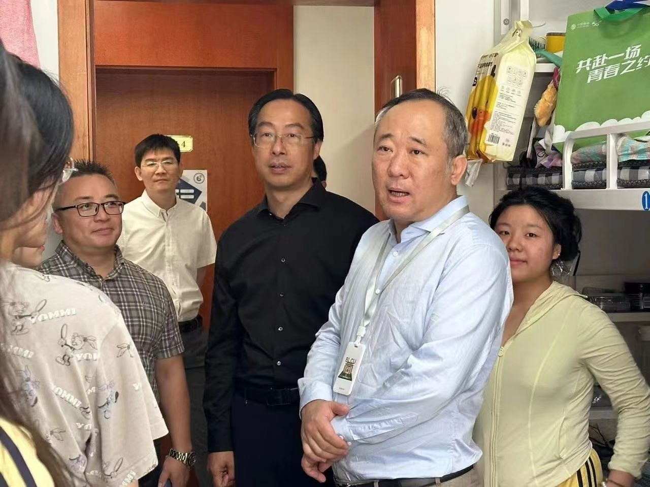 之后,段鹏校长、黄益方副校长和心理学院党总支书记王旭等一行人走访了心理学院学13楼219学生宿舍,向新生表达了热烈欢迎与真切关心,并与新生们进行了亲切交流,鼓励新生积极参与学院的各项活动,在自我提升的同时,尽快融入北语大家庭,获得归属感。