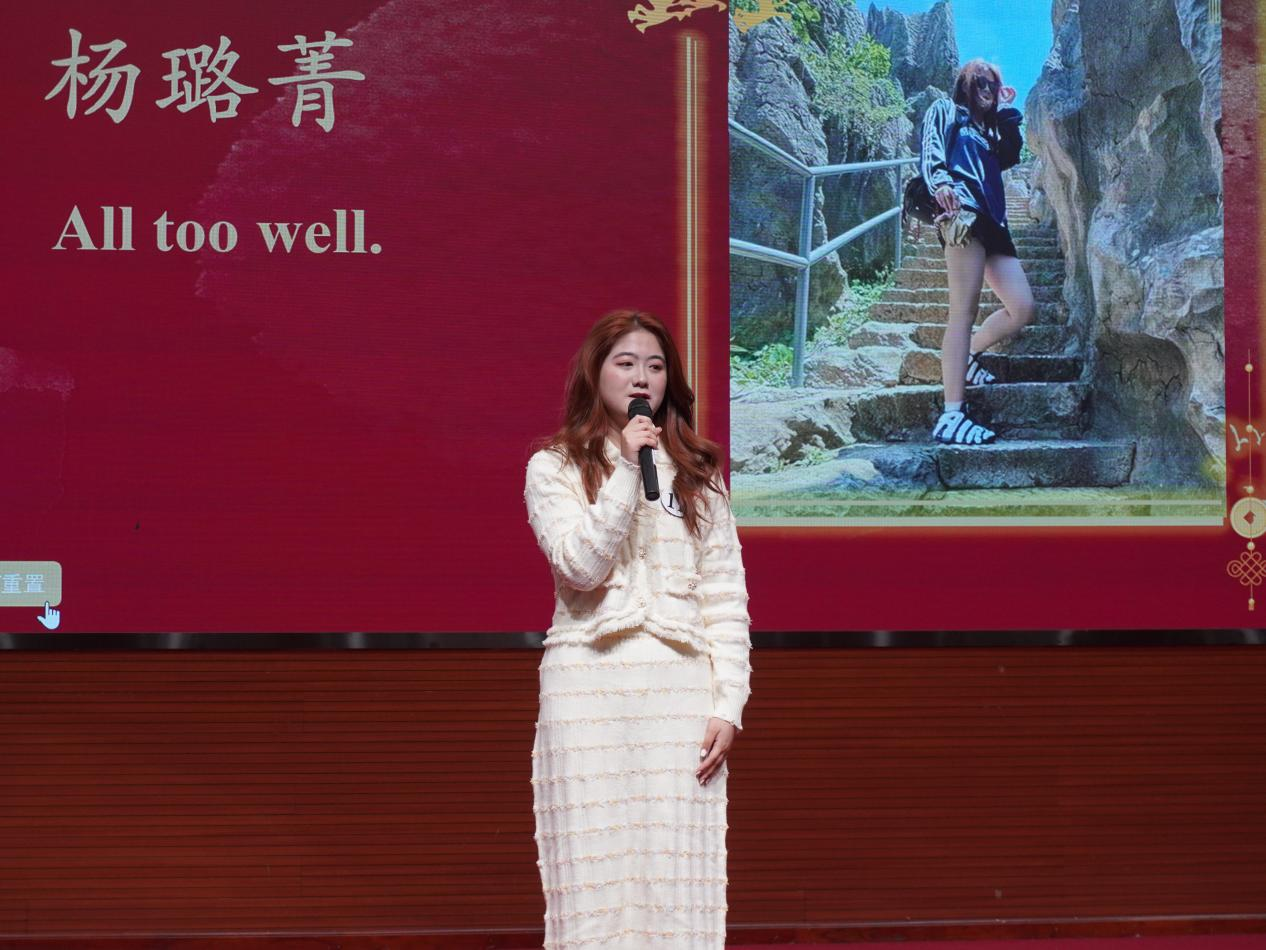 晚上七点,比赛正式开始。首先是三分钟的定题演讲环节,选手们多从个人经历出发,绘声绘色地讲述了自己与“中国龙”的缘分,细致入微地阐释了“中国龙”作为中华民族文化图腾的重要地位。选手们的演讲,不仅使“中国龙”这一概念跃然于话语间,更生动诠释了中华民族的文化底蕴。这是吾辈青年对于传统文化的珍视,更是对于民族精神的认同。
