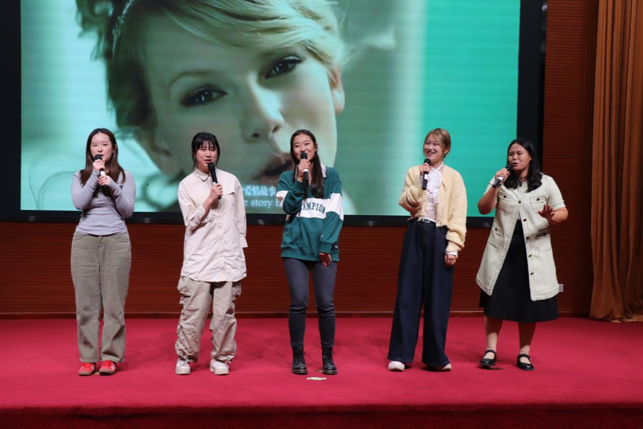 中场休息环节,上届新生口语大赛的优秀选手们为我们带来了精彩的歌曲《Love Story》。青春甜美的歌喉与朗朗上口的旋律,不仅点燃了现场的青春力量、调节了比赛的紧张气氛,也为选手们提供了精神上的支持与鼓舞。