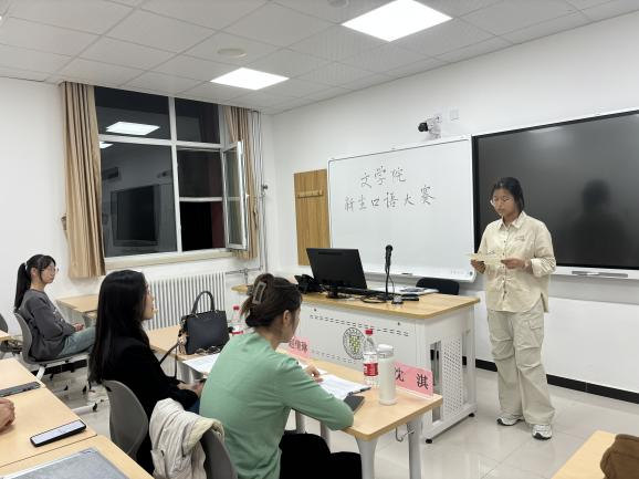 10月8日19:00,北京语言大学文学院2024年新生口语大赛在教二120教室顺利举行。外国语学部高级翻译学院英语口译专业研究生赵倩琳、外国语学部英语学院英语语言文学专业研究生沈淇受邀出席并担任本届新生口语大赛评委。