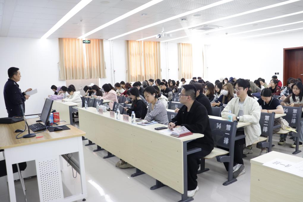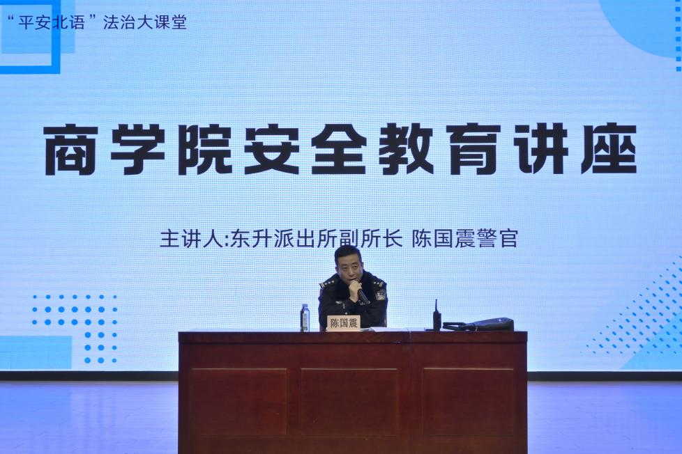 北语新闻网4月1日电(通讯员 刘雨楠 摄影 周渤程)为增强学生安全防范意识,提升防诈骗能力,引导学生以积极的精神面貌投入新学期,近日,商学院在教二121、教一209召开安全教育讲座暨新学期年级大会。本次安全教育讲座由商学院与校保卫处共同举办,邀请东升派出所副所长陈国震警官担任主讲。商学院学办负责人刘珊,辅导员党秀冬、辛茹雯、翟旭垚及商学院本科生参会。