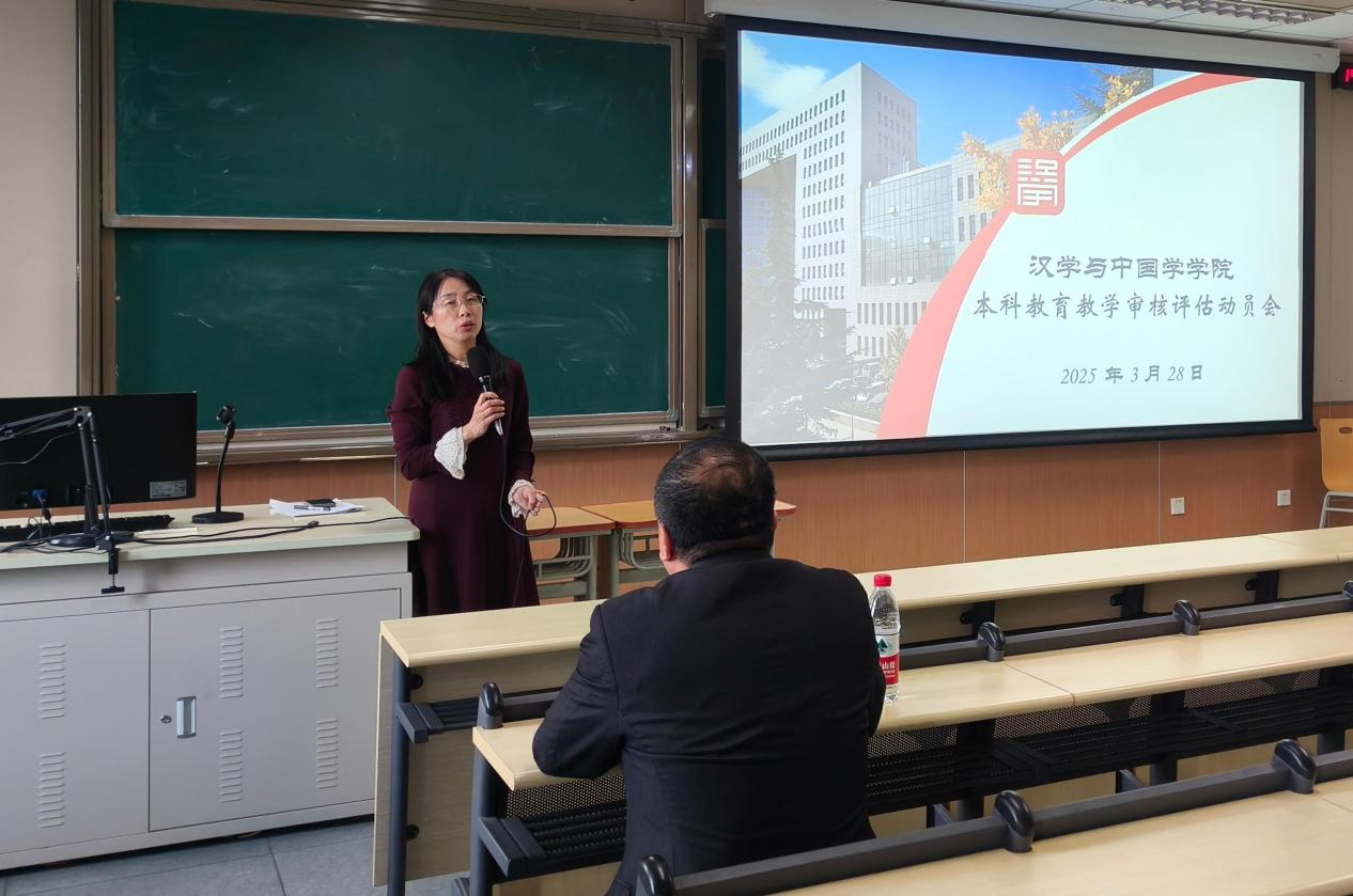 北语新闻网4月3日电(通讯员 王富丽 摄影 陈妍)为进一步落实学校迎评工作会议精神,凝聚共识,高质量完成迎评工作,3月28日,汉学与中国学学院本科教育教学审核评估动员会在教一楼701召开,会议由学院办公室主任李宏老师主持,汉学与中国学学院党委书记马铁石、副院长(主持工作)李萍、副院长牟世荣、副书记陈蕾出席会议,学院全体教职工参加了本次会议。