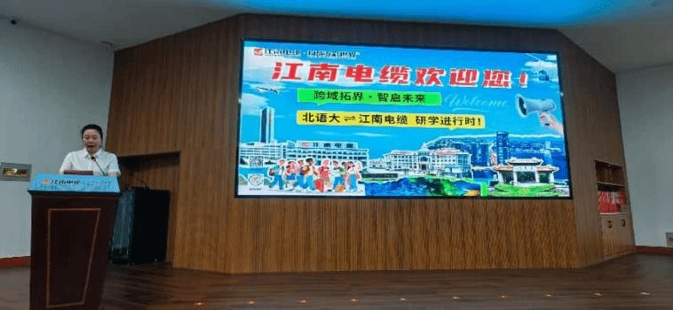 北语新闻网7月21日电(通讯员 王身钢 摄影 梁诗)在 “一带一路” 倡议深入推进,中外文化交流日益频繁的背景下,北京语言大学应用中文学院 20 余名来自波兰、德国、俄罗斯、日本、泰国、印尼等国的留学生,在学院党委周鑫书记、副书记白浩及任课老师梁诗、王身钢带领下,开启了一场别开生面的研学之旅。此次研学旨在让海外学子深入体验中国传统与现代文化的交融,提升中文水平,深入了解中国经济社会发展脉络,其中江南电缆的参访成为关键一环,为留学生们揭开了 “中国制造” 的神秘面纱。