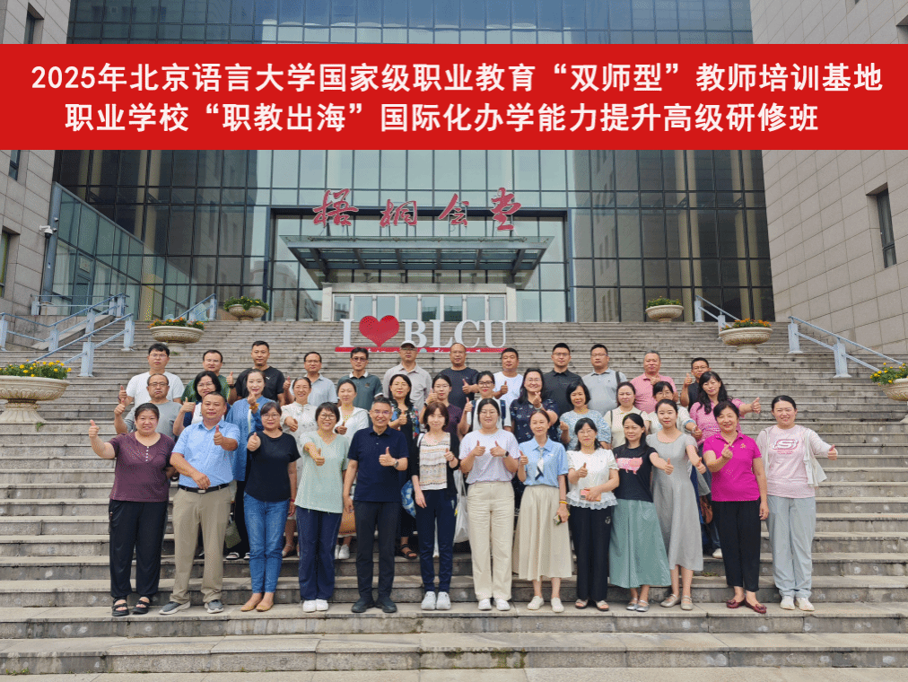 北语新闻网8月21日电(通讯员 张利群 摄影 张利群)由北京语言大学教育类国家级职业教育“双师型”教师培训基地实施的青岛市2025年职业院校教师国家级培训项目“职业学校‘职教出海’国际化办学能力提升高级研修班”在北京语言大学圆满结营。本次为期七天的培训,职业院校40位优秀教师代表,围绕职业教育国际化发展核心议题展开深度学习与实践探索。