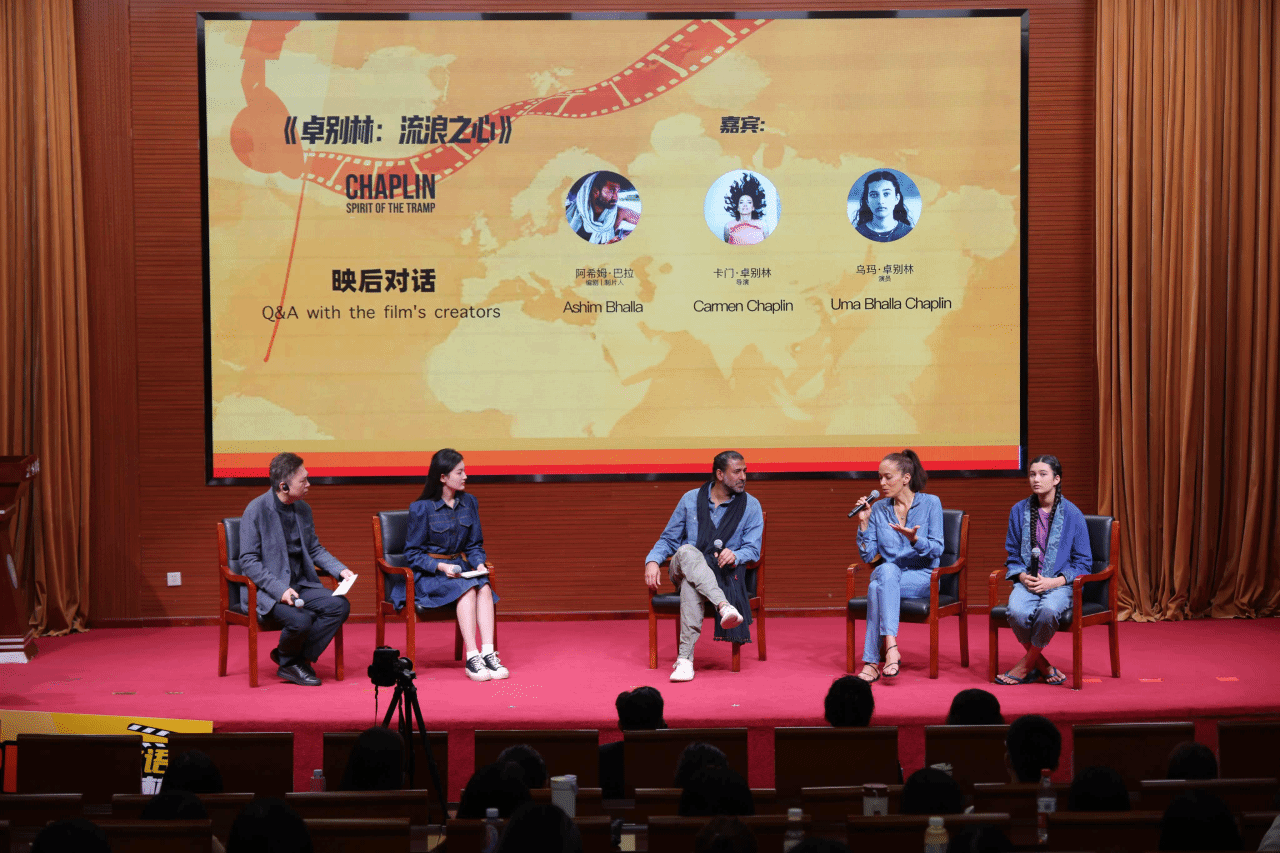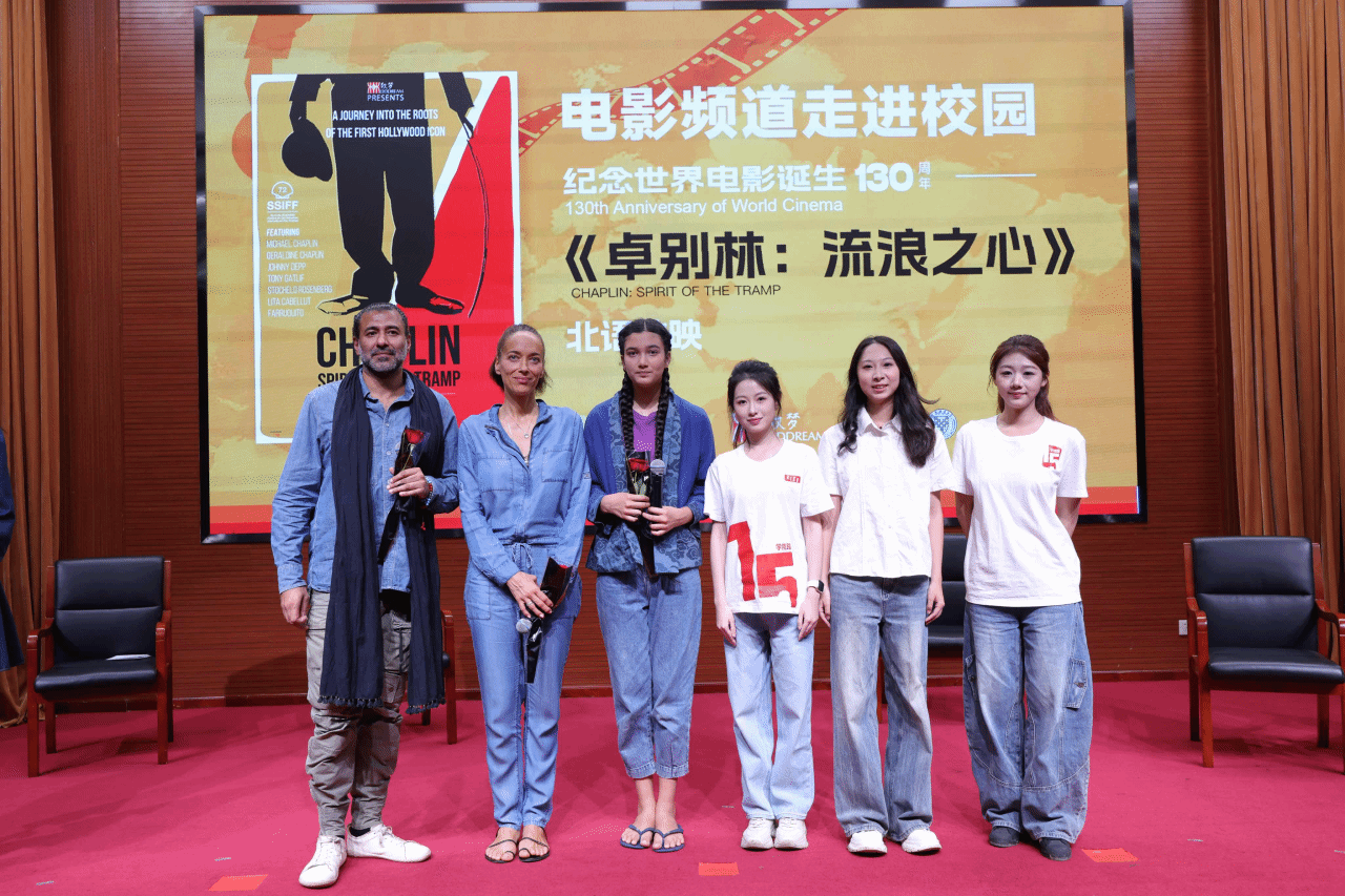 北语新闻网10月7日电(通讯员 霍奕含 摄影 张萌 王晶银)近日,英语和高级翻译学院(以下简称“英高院”)联合CCTV6中国电影频道“走进校园”项目,在学校中法文化交流空间举办《卓别林:流浪之心》纪录片放映及映后会谈活动。活动特邀喜剧大师卓别林的孙女、纪录片导演卡门·卓别林及其家人出席,通过放映卡门执导的纪录片,搭配中传学者与英高院学子共同主持的映后对谈,搭建起中外电影文化交流桥梁。英高院24英播的多名学子深度参与接待、讲 解、翻译、主持辅助等工作,在实战中展现专业素养与跨文化沟通能力。