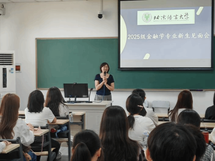 金融系系主任徐晓飞副教授围绕北语数智金融专业特色与培养方案展开讲解,从语言优势、金融专业知识、科技赋能三方面介绍专业亮点。她指出,金融学专业(数智金融方向)是国家级一流本科专业建设点,顺应时代需求,课程融入人工智能、大数据分析、Python编程等科技元素,且依托学校“语言+专业+科技”三重优势,通过丰富英语课程、英文原版教材及微观经济学、国际金融等专业课程,培养复合型人才。徐老师特别提醒同学们,要充分重视专业实行的学分制管理,提前做好时间与精力的分配,尽早规划大学四年发展路径,在专注学好专业课程的基础上,积极参与各类课外活动,在平衡学业与生活的过程中积累经验,提升综合能力。