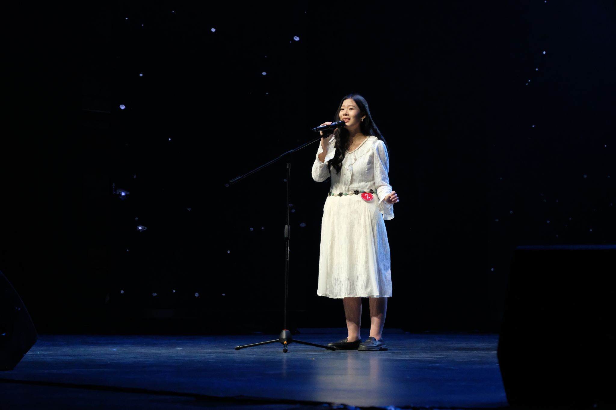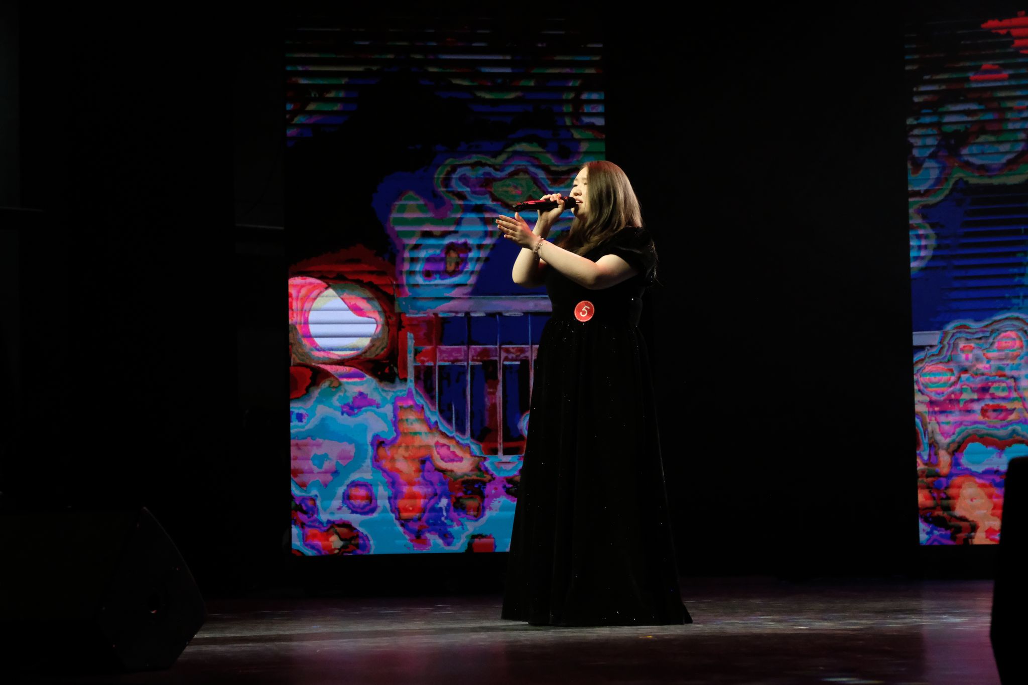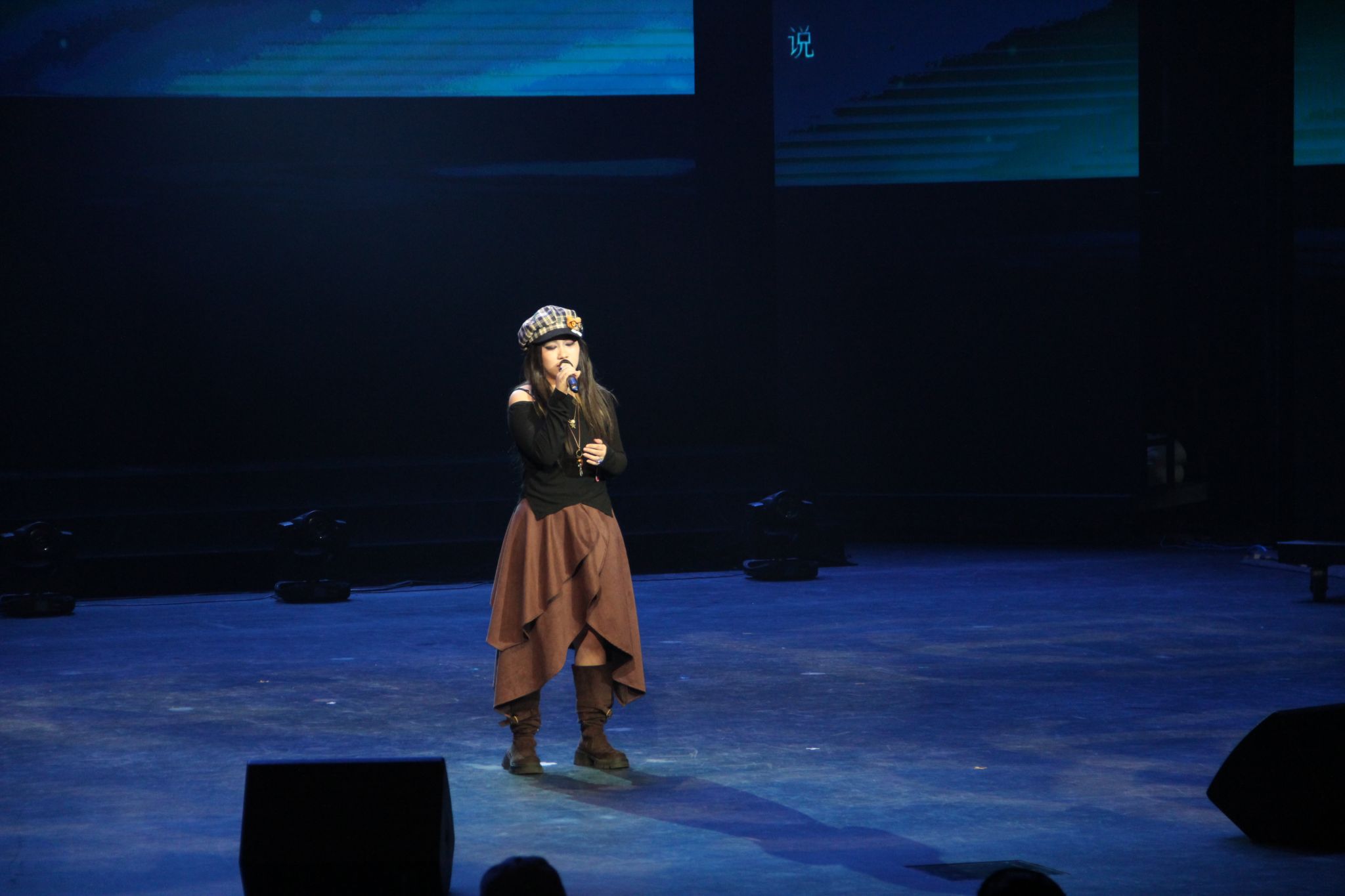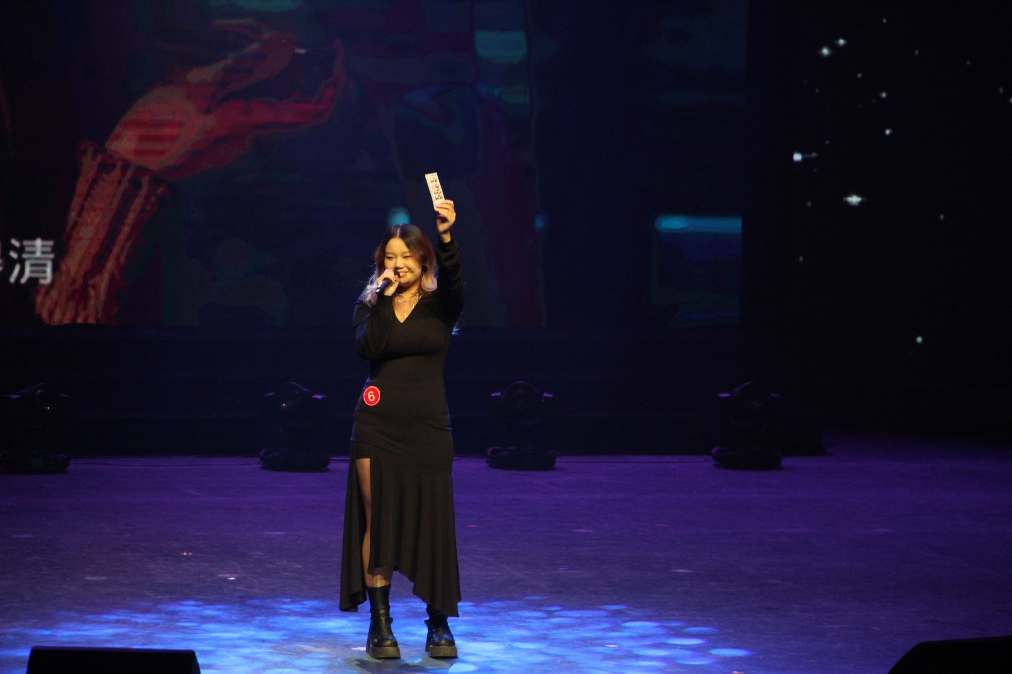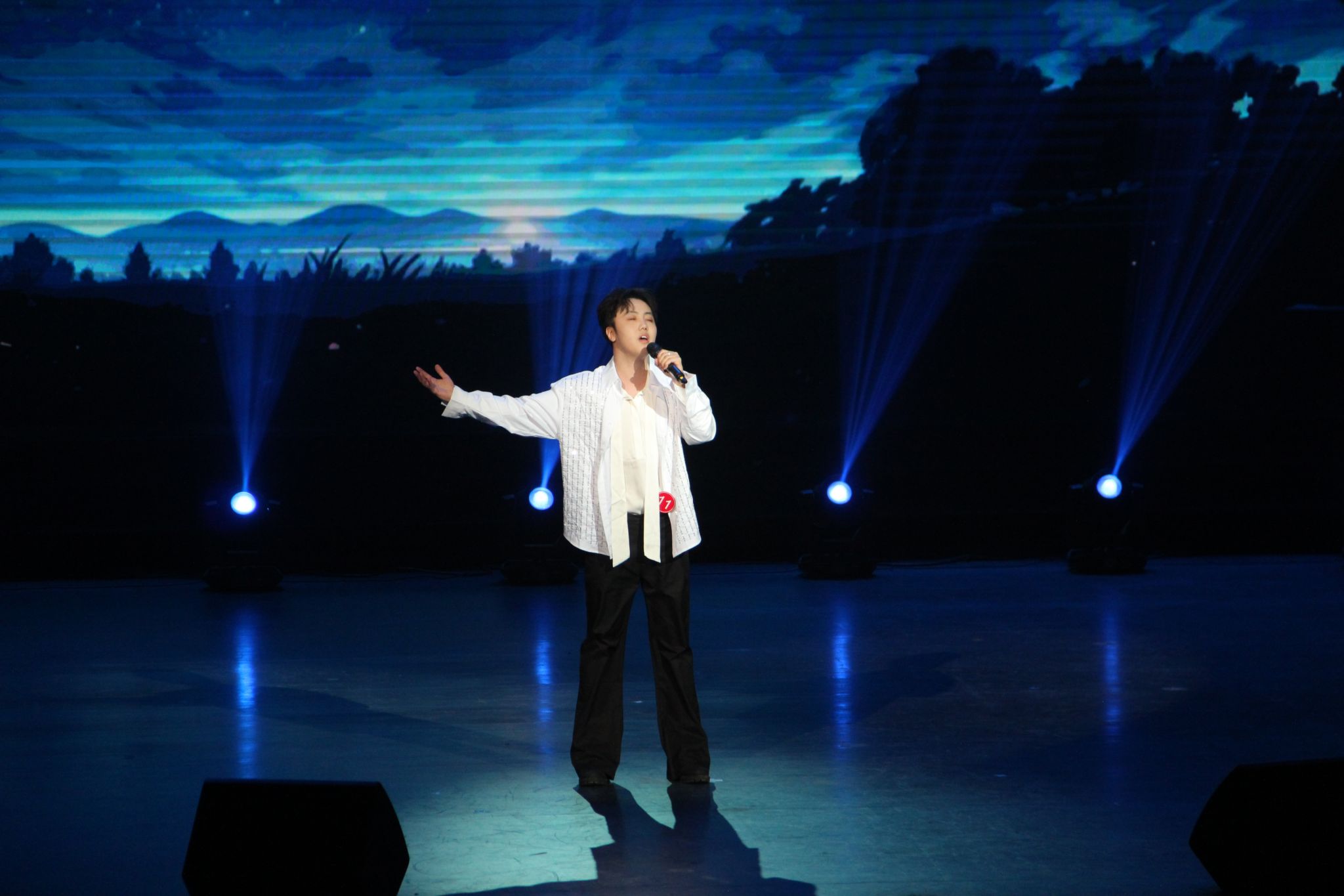 二号选手朱靖坤为我们带来电影《黑暗阴影》中的歌曲《Top of the world》,用电影片段导入,将全场代入影视作品之中,搭配极具感染力的演唱,婉转的曲调让观众沉浸在电影的氛围中。