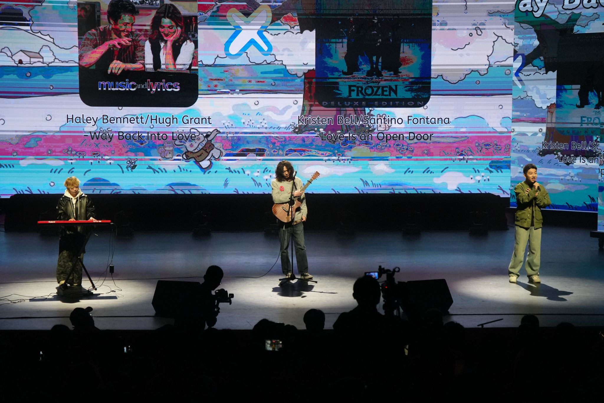 十号选手The BAG.乐队为我们带来K歌情人与冰雪奇缘的串烧歌曲《Way Back into Love》和《Love Is an Open Door》,欢快节奏与默契演绎无缝衔接,瞬间点燃全场热情,观众纷纷摇摆欢呼。