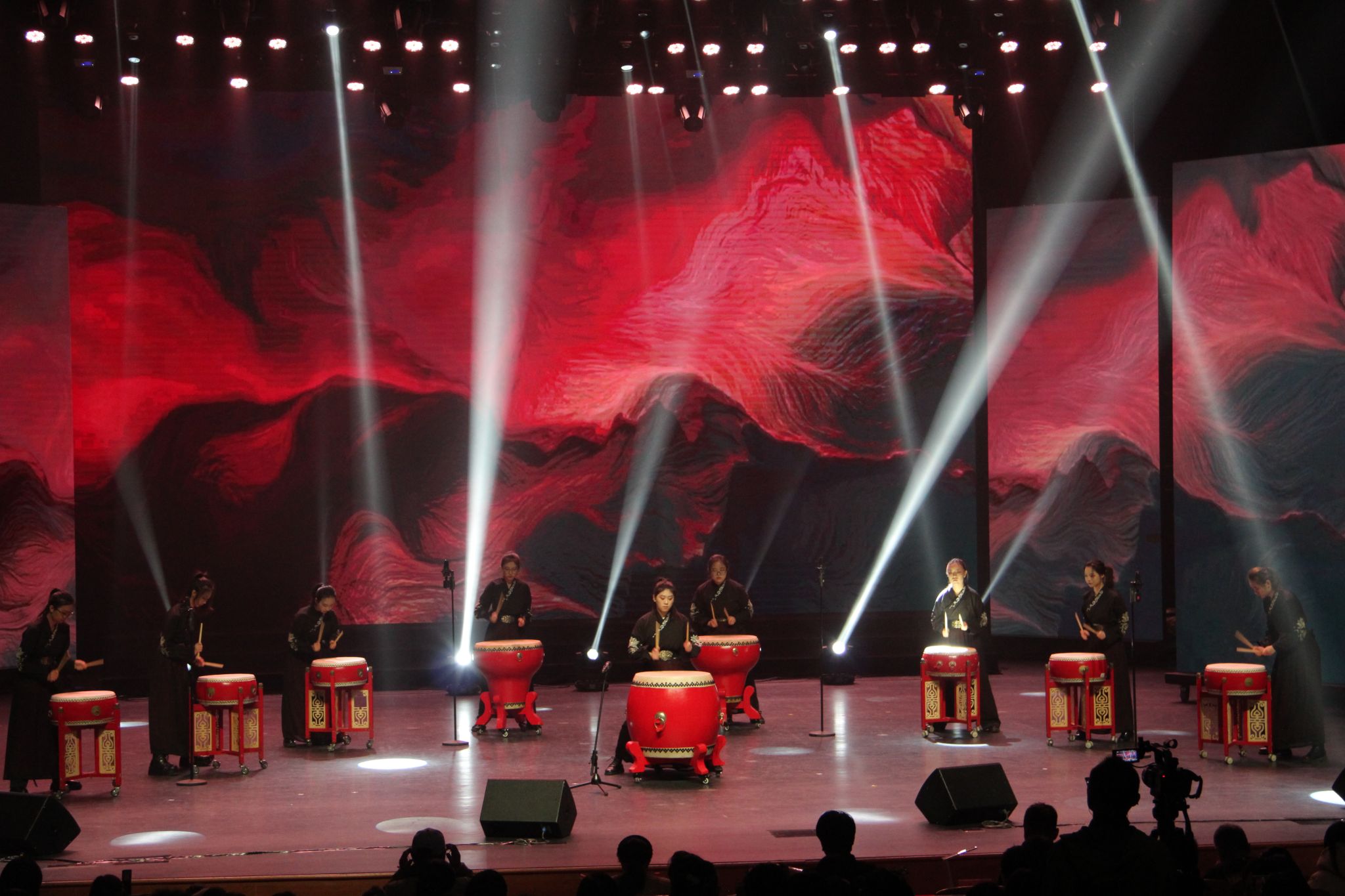 第一轮十一组歌手的表演结束后,中外学生艺术团打击乐队为我们带来了中场节目《将军行》,以震撼演绎,让我们沉浸式感受了《将军行》的雄浑气魄与英雄豪情。鼓点如惊雷般铿锵有力,节奏变化错落有致。极具冲击力的表演不仅为现场注入全新活力,更巧妙衔接上下半场流程,将观众的热情再度推向顶峰,让整场活动的氛围始终保持高涨不下。