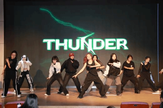 热烈的音乐奏响,热场舞《ELEI》与《UNDEFEATED》以跃动节奏瞬间点燃全场,舞者身影在追光灯下划出优美弧线,每一个动作都尽显青春激情与活力。进入“初遇”篇章,24汉3班级节目《我和你》以简约真挚的演绎勾勒出最美相遇的模样。《那些你很冒险的梦》旋律悠扬,关于远方的憧憬、未来的想象随曲调悄然绽放。张哲豪、邢骏廷同学带来的《我们的歌》与《小镇姑娘》接续唱响,串联起一代人的青春旋律,既藏着淡淡怀旧情愫,更饱含对未来的轻盈期许。现场温情与热忱交织,氛围愈加热烈,台下的同学们挥动着荧光棒,整个礼堂化作一片星海,每一颗星都是一个崭新的梦想。