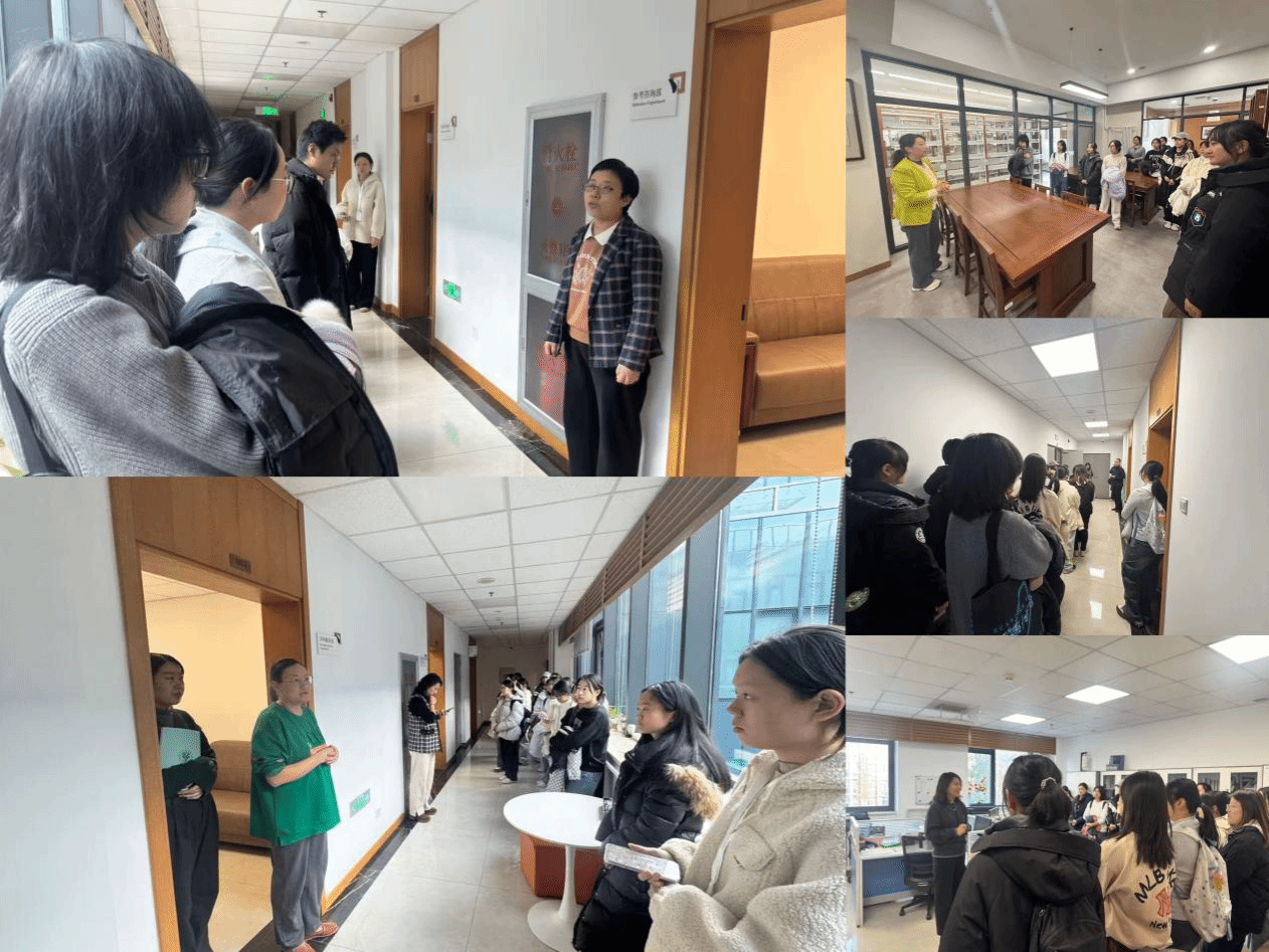 活动开始前,陆老师向同学们的到来表示热烈欢迎,并介绍了整体参观安排。随后,同学们依次参观了采编部、办公室、参考咨询部、技术部、古籍库房和阅览室、学科服务部。在采编部,同学们第一次看到了图书的“诞生”——从选书订购、分类编目、数据加工、粘贴条码财产号,到生成定位标签、典藏入库,最终完成上架的全流程。技术部老师展示的图书盘点机和“RFID定位标签”系统引起阵阵惊叹,这套能自动识别错架图书的智能系统,让日常图书管理效率大幅提升。在古籍库房里,八万册线装古籍散发着历史幽香。同学们了解到,由于部分古籍尚未完成数据加工,读者仍需通过传统卡片目录检索。一张张泛黄的卡片就像图书馆的“活化石”,承载着几代图书馆人的心血。参考咨询部的老师们都如同“搜索引擎”,对各类信息资源及其使用如数家珍;学科服务部的老师们则是老师同学们学习和科研的坚实后盾,为大家提供个性化的解决方案