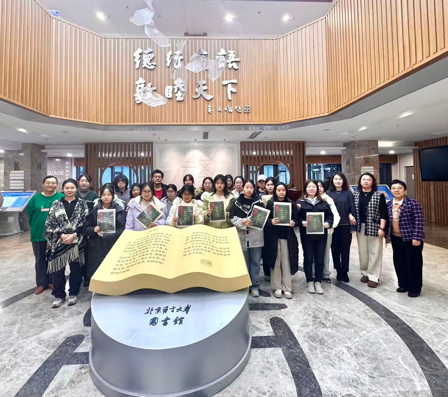 参观结束后,陆老师向同学们全面介绍了图书馆的发展定位和整体情况。她指出,作为“小联合国”里的图书馆,北京语言大学图书馆始终紧贴学校国际化办学战略,依托丰富馆藏和专业服务体系,为来自全球的学生和教师提供高水平学习与研究支持。目前,图书馆纸本图书约98万册、电子资源超过300万种,可预约座位1058个,总座位超1200个,去年全年入馆人次达90万、网站访问量93万次,使用需求十分旺盛。近年来,图书馆围绕数据资源体系、阅读推广体系和教研支持体系形成了一套较为完善的服务框架,不断推动图书馆从“借书场所”向“学术空间”和“文化中心”转型。陆老师鼓励同学们充分利用数据库、文献传递、学术培训等资源,特别是在论文写作、考研准备、专业学习及求职阶段,养成使用专业数据库的学习习惯。