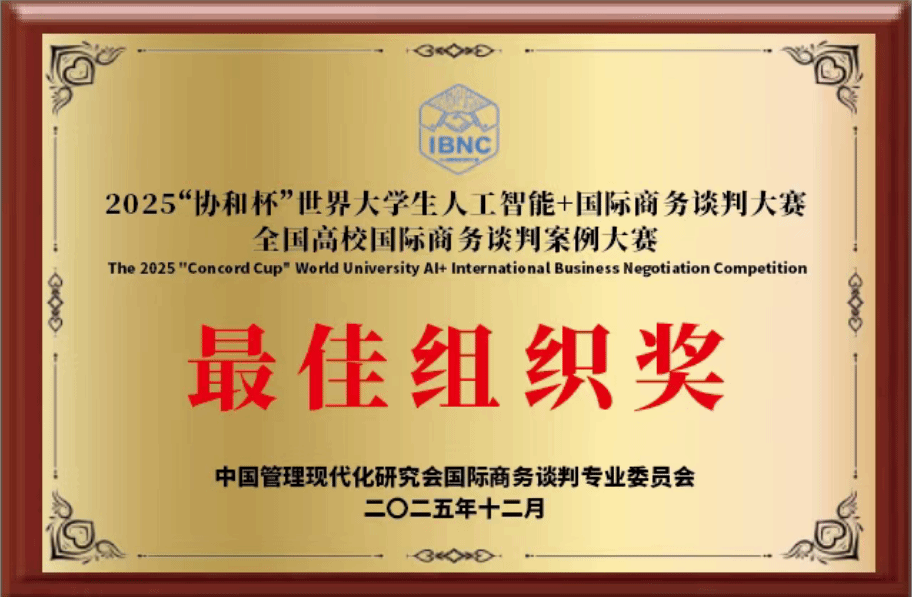 北语新闻网12月10日电(通讯员 陈蕾 摄影 纪洁、张文溪等)2025年12月7日,由中国管理现代化研究会国际商务谈判专业委员会主办、福建师范大学协和学院承办的2025“协和杯”世界大学生人工智能+国际商务谈判大赛圆满落下帷幕。商学院中、外本科生和研究生组成了5支队伍参加此次比赛。最终,商学院获“最佳组织奖”;一等奖队伍三支;二等奖和三等奖队伍各一支;两支队伍获“最强人工智能应用奖”;优秀谈判手1人;最佳谈判手3人。商学院国际经济与贸易系陈蕾副教授、刘智媛副教授担任本次比赛指导教师并获“最佳指导教师奖”。
