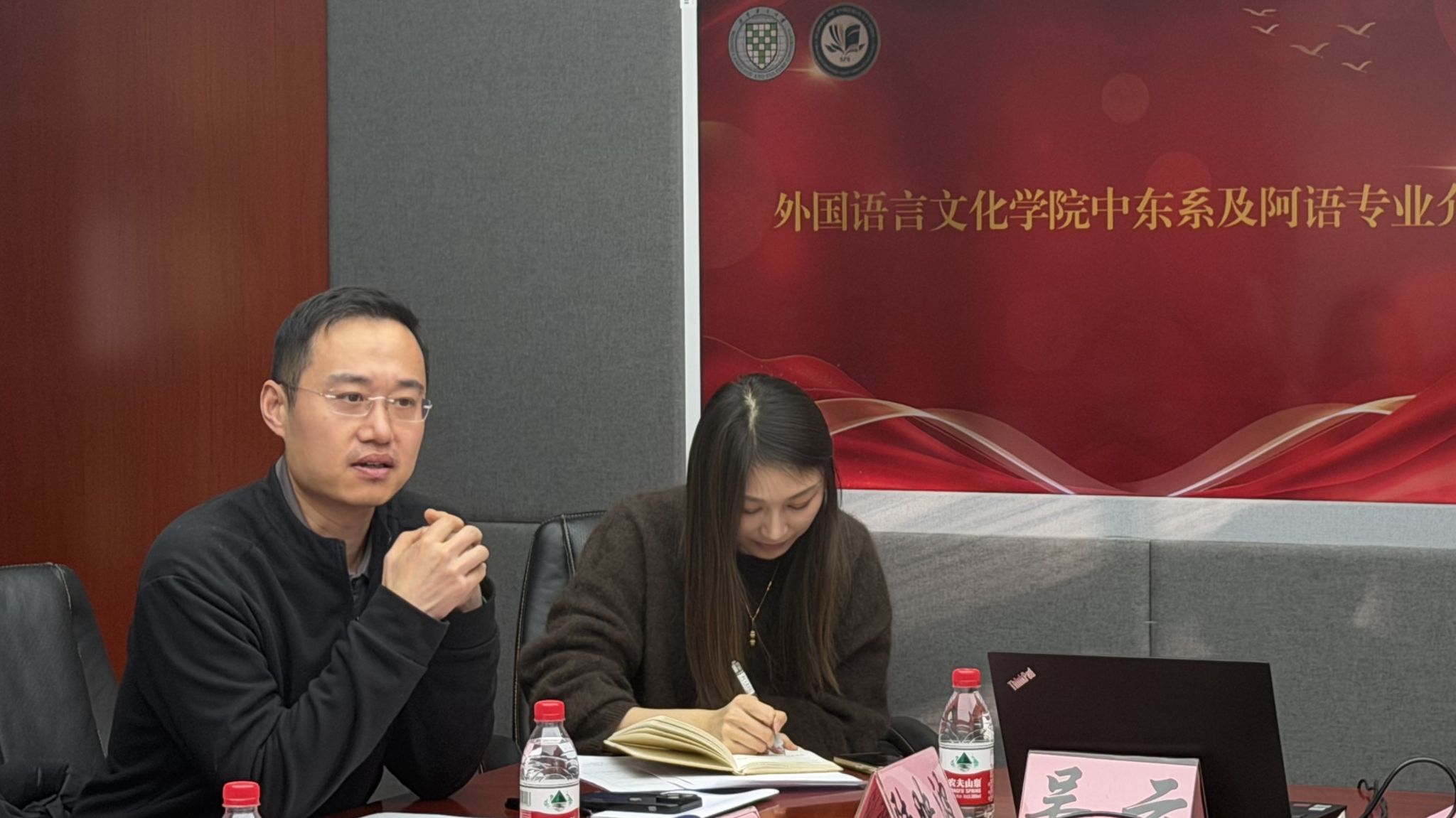 会议由外国语言文化学院中东系教工党支部组织委员庞博主持。中国石油大学(北京)本科生院副院长董翠宇、石油工程学院副院长李靖、本科生院教育教学研究中心科员范肖玉、油田气开发第二党支部副书记吕晓聪、25级本科生辅导员刘衡升、北京语言大学教务处副处长刘宝霞、外国语言文化学院院长罗林、党委副书记冯会茹、中东系教工党支部书记周华、阿拉伯语系主任陆映波、副教授陈静以及部分学生代表出席会议。