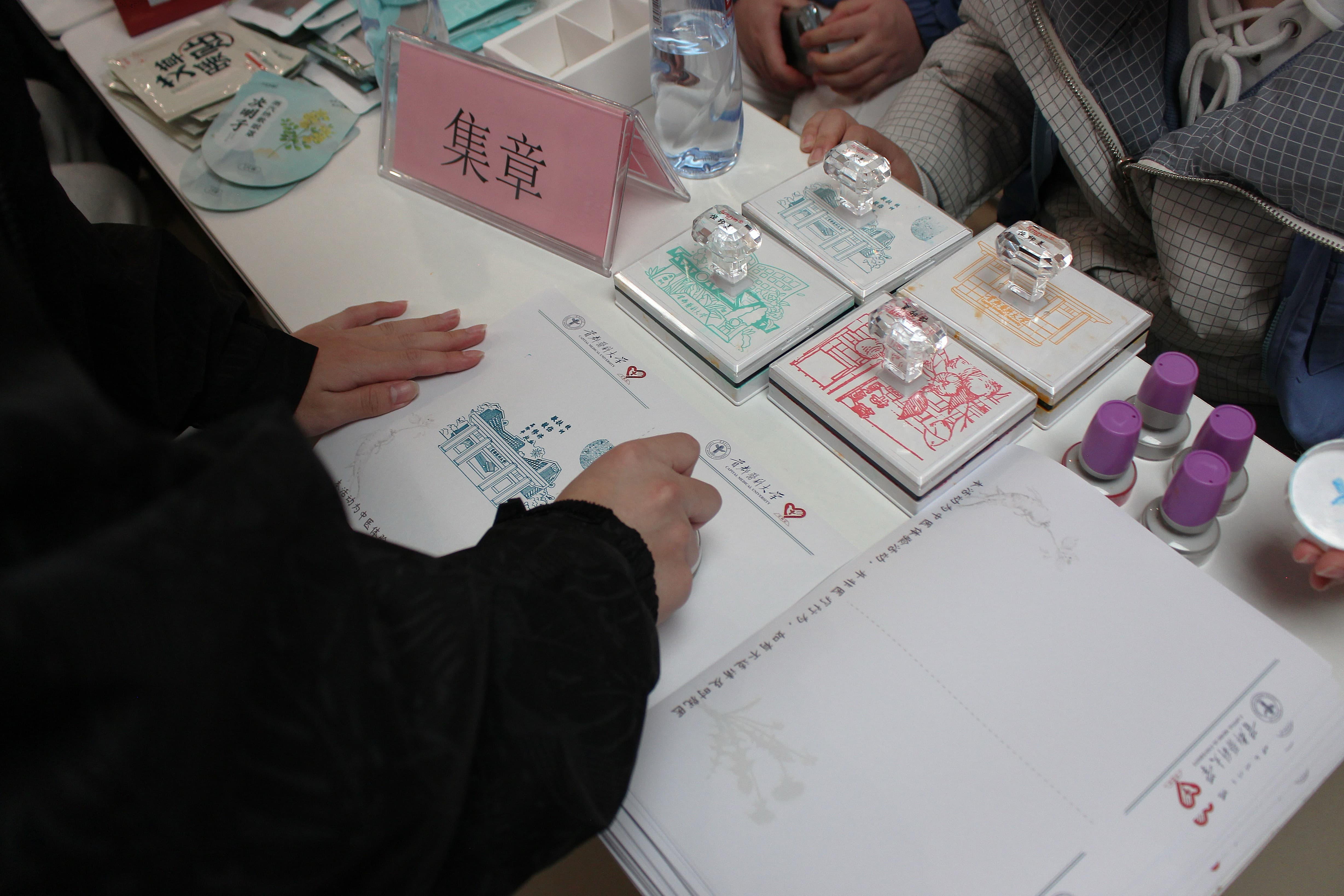 印章打卡区提供印有首都医科大学建筑图案的印章,供同学们拓印于打卡纸上,成为两校友谊的独特见证。