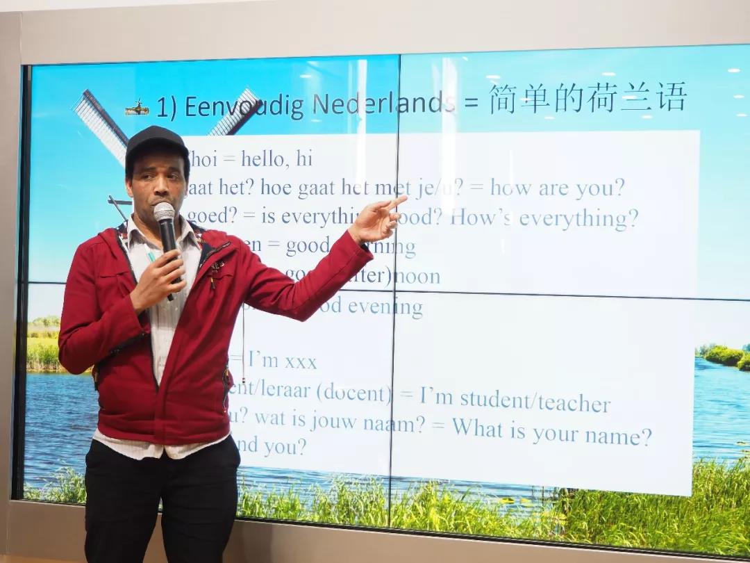 最后,志愿者教大家学习了一些简单的荷兰语,大家纷纷进行跟读,学习热情高涨,现场气氛十分活跃。志愿者还向大家介绍了一些博物馆以及荷兰的假期节日。