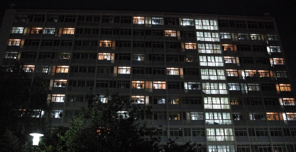 晚上8点,灯展活动正式开始。首先,主持人公布了灯展活动线上答题的获奖同学名单;随后10、11、15号楼的一盏盏灯光交错熄灭、点亮,分别组成了心形、“5.8”红丝带以及红十字的图案。