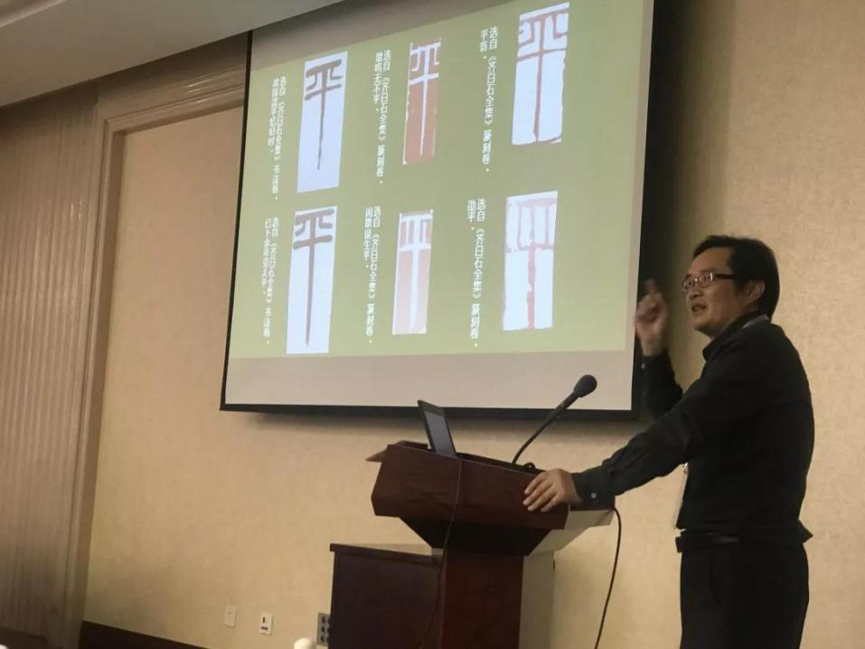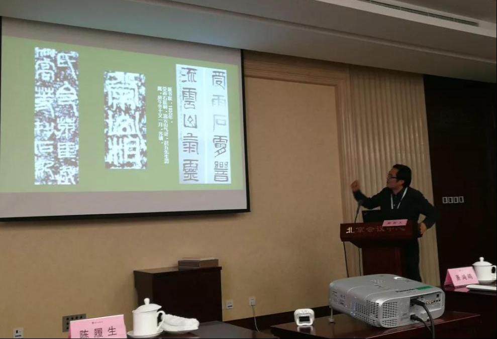 朱天曙教授在发言中认为,齐白石是二十世纪最伟大的艺术家之一,其篆刻艺术来源于他独特的书法,来源于《天发神谶碑》《三公山碑》《秦权》等秦汉碑刻文字。他从“印从书出”理论的发展、齐白石的篆刻作品与篆书的比较指出齐白石的篆刻与篆法的关系,指出齐白石“印从书出”实践的三个特征:一、独特的汉篆法和字形结构;二、篆书笔意和爽利刀法相结合;三、通过残破和留红表现独特的金石趣味。