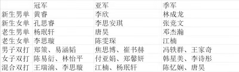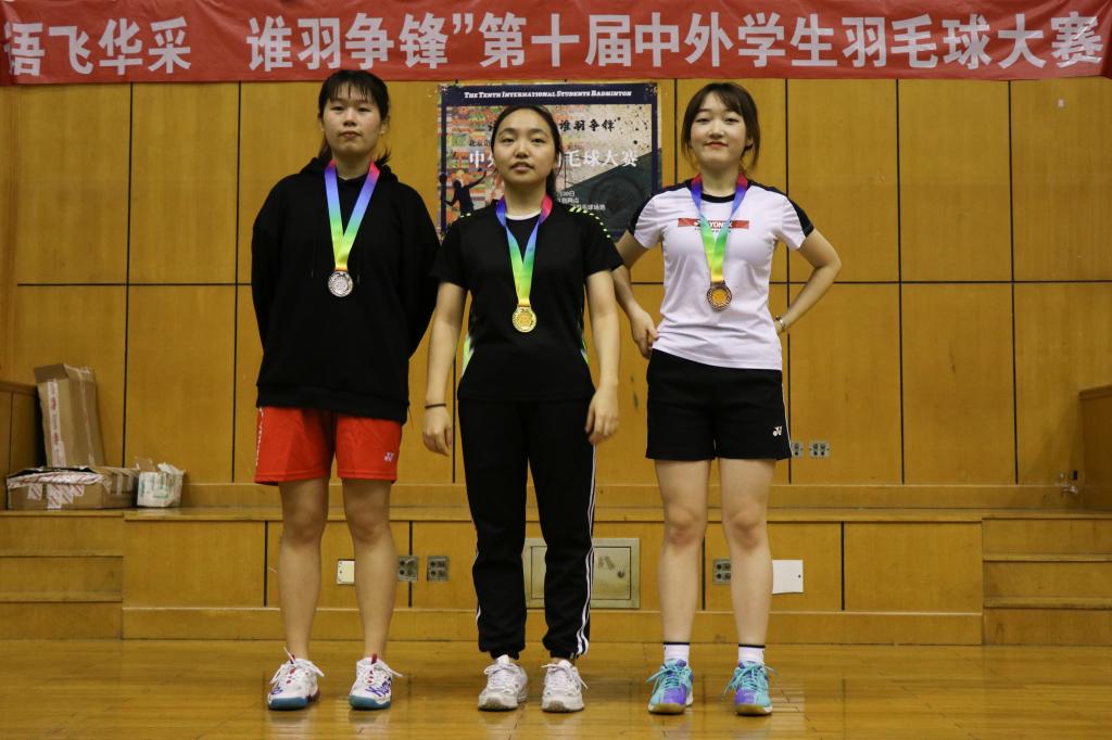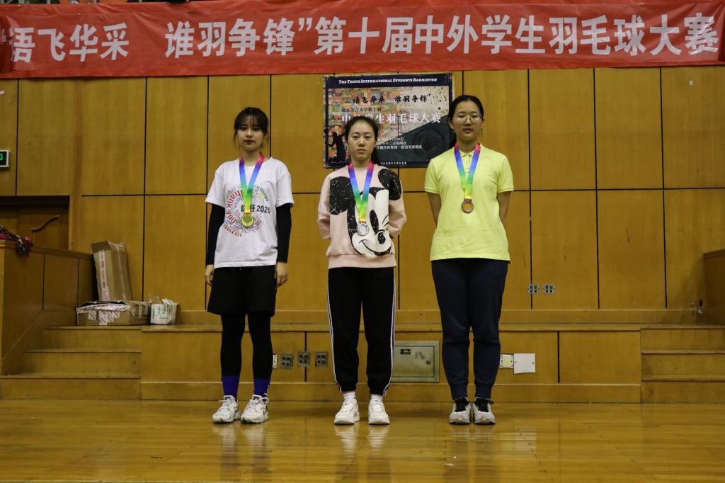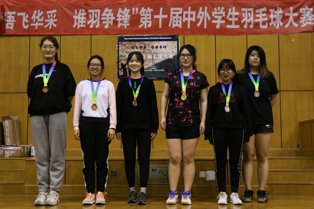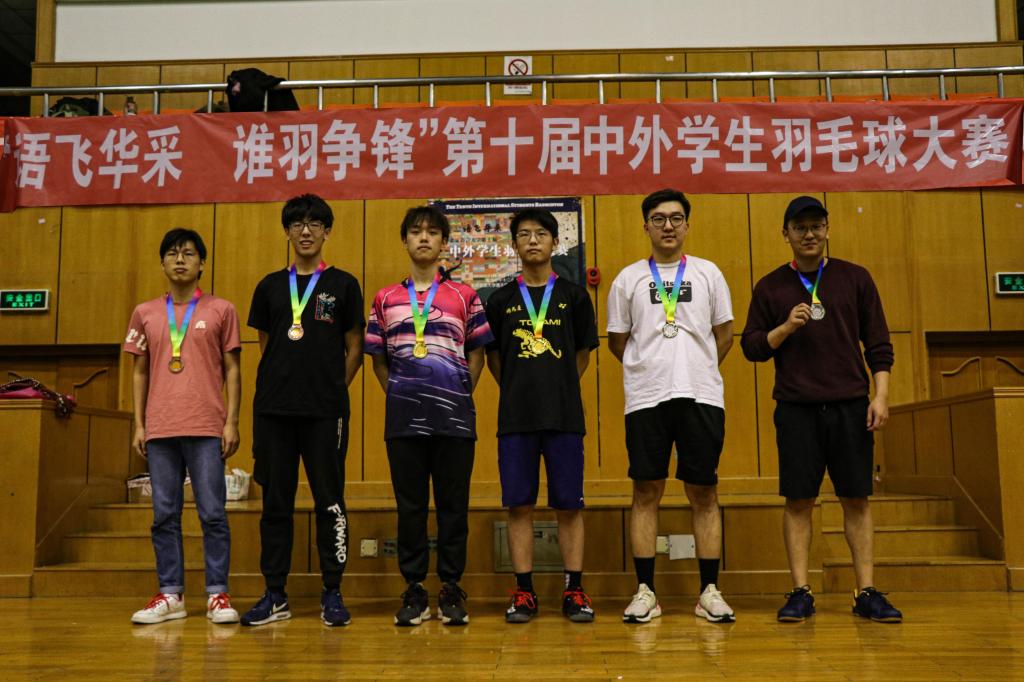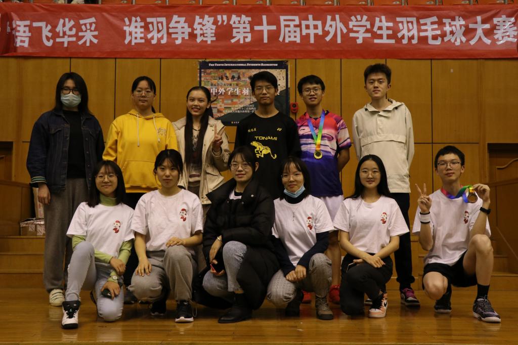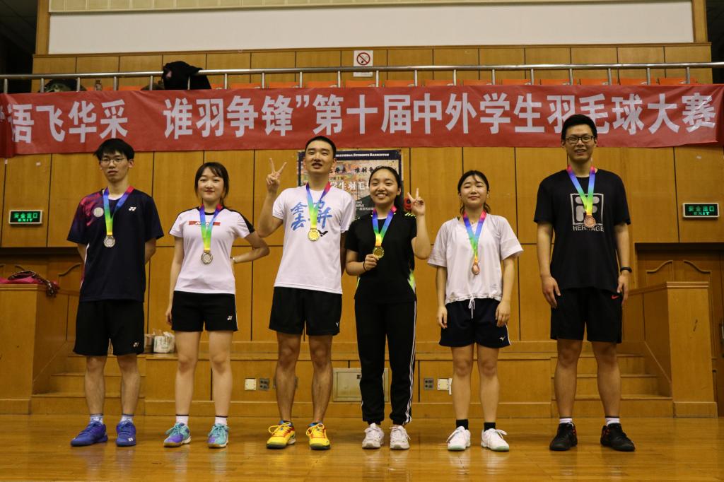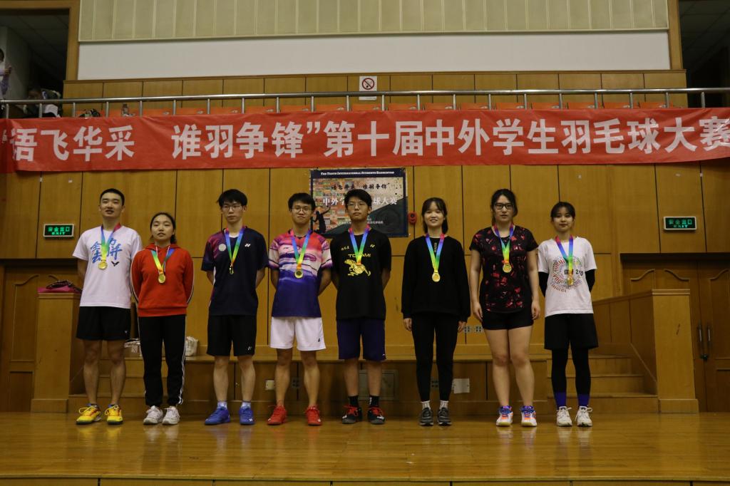 时近下午,第十届中外学生羽毛球大赛赛事圆满落幕。我校艺术健康体育教育中心副主任为各位选手颁发奖牌与奖状,并与全体参赛人员合影。最终获奖名单如下图: