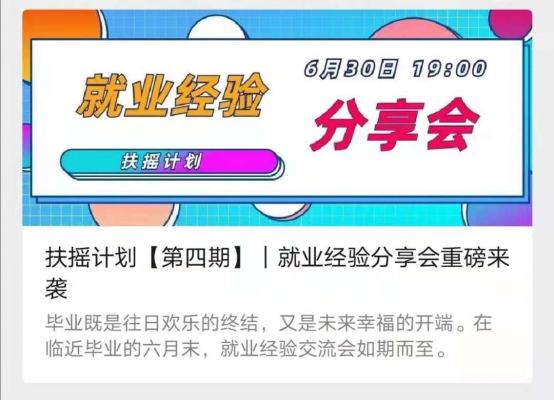 本次的就业经验分享会是校研会权益部开启的新栏目“扶摇计划”中的最后一期,希望本次的“扶摇计划”能够对同学们今后的求职就业有所帮助。