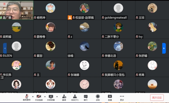当晚7点,同学们准时进入直播间等待。分享会由权益部副部长赵翠娥同学主持。赵翠娥同学简要介绍三位学长学姐研究生阶段的主要经历和毕业后的就业单位,同时希望同学们在分享会中能有所收获,有所进步。