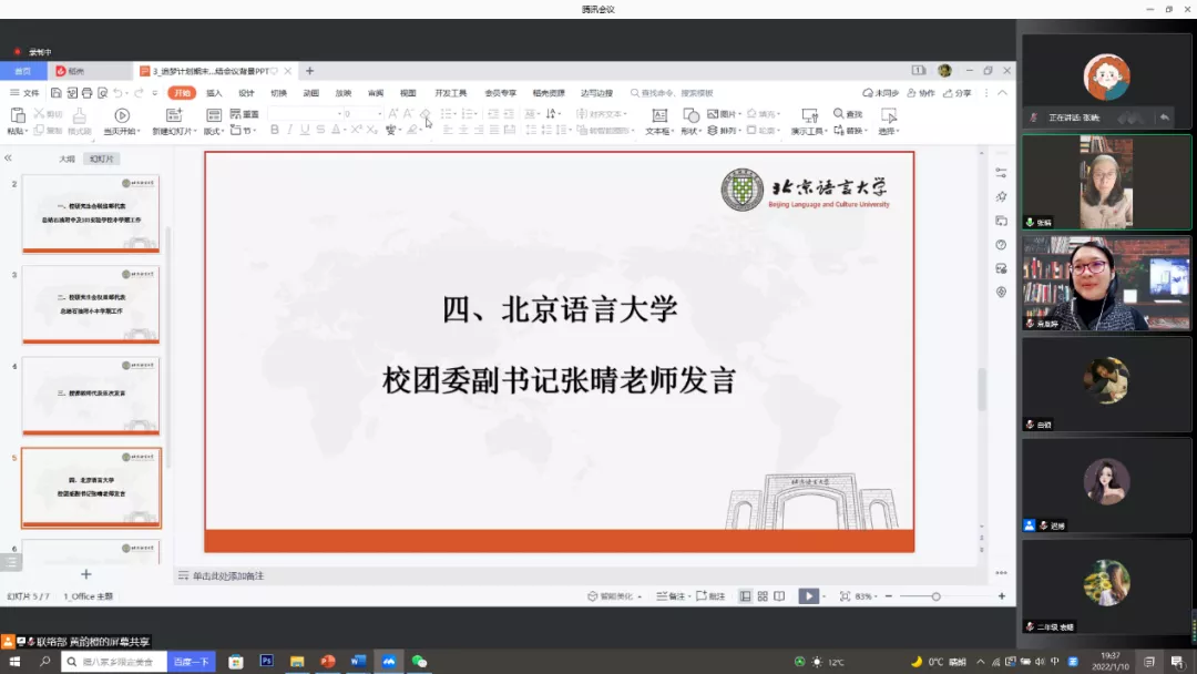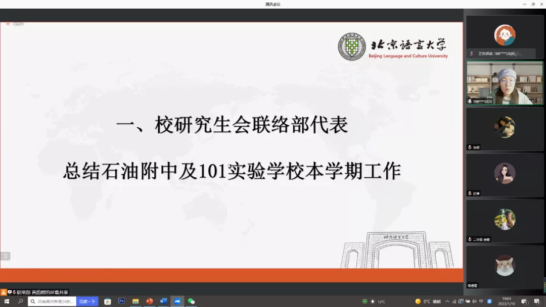 1月10日,“追梦计划”教学实践活动期末总结会议顺利开展,本次会议以线上形式进行。校团委张晴老师和学校办公室袁胤婷老师以及实习教师代表、校研会成员代表出席此次会议,会议由联络部黄韵橙同学主持。