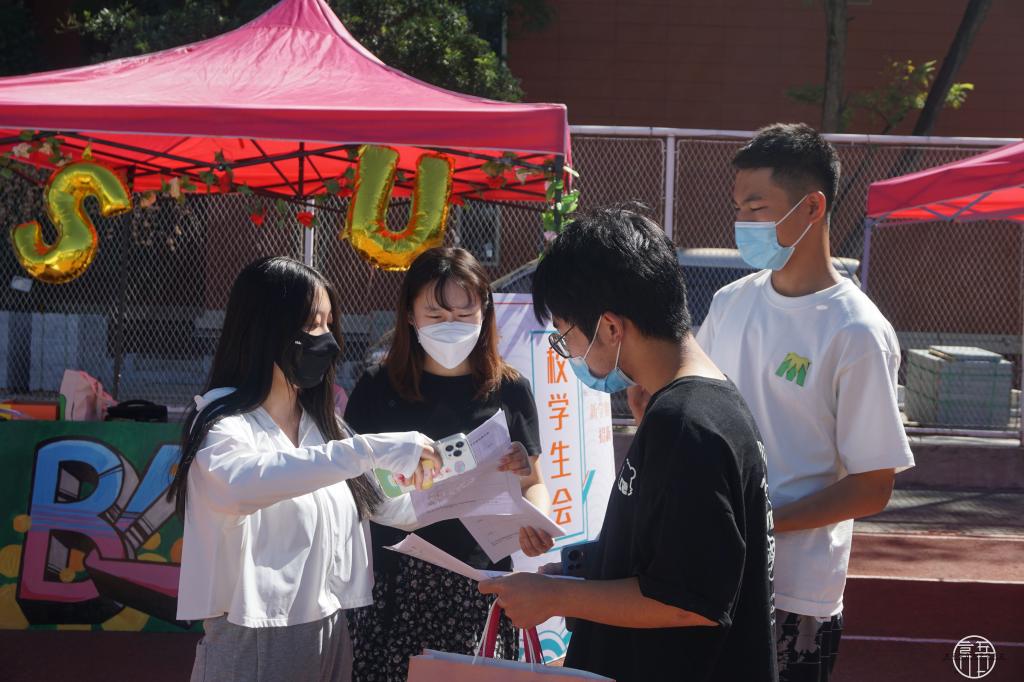 上午八点半开始,新生陆续前往风雨操场报道。校领导也莅临现场,指导迎新工作。学生会成员积极帮助和服务新生,在风雨操场内为新生发放传单,在展棚内为新生详细介绍学生会,校学生会为五大校级组织之一,由四个部门组成,共同负责学生会日常事务、活动组织和学生权益等工作,始终践行“全心全意为同学服务”的宗旨,听取同学心声,曾举办“提案大赛”“公寓文化节”等活动,为同学办实事。在招新宣传的过程中,工作人员们耐心解答新生们提出的疑问,赠予新生各种温暖的小礼品,并对各部门的职能进行详尽地讲解,许多新生表示有加入学生会的意愿,选择进入招新群进一步了解相关信息。