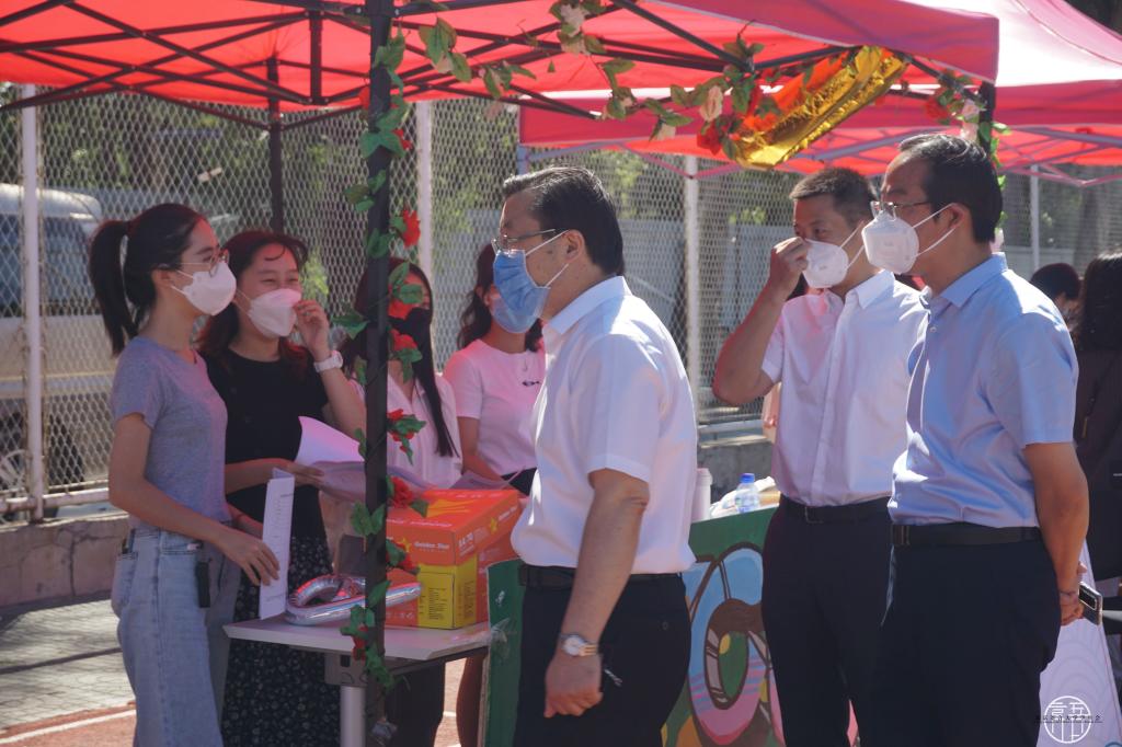 早上八时,各组织工作人员陆续到达风雨操场,开始布置展棚和摆放桌椅、旗帜、宣传页,各项准备工作有序开展。各组织严格遵守疫情防控需要,工作人员均佩戴N95口罩,并在各展棚内设置防疫专员一名,负责按防疫要求提醒大家佩戴口罩、间隔排队、进行手部消毒等。