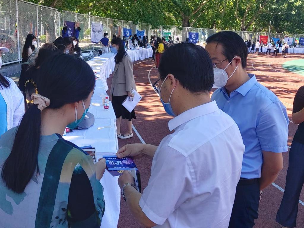 新生报到过程中,学校、学部的各位领导们也在百忙之中亲临现场,亲切关怀新生情况,暖心慰问报到工作,并为在场的师生和工作人员们送上了一份来自学校的诚挚问候。交谈中,刘利校长更是饶有兴致地了解了学院为新生准备的特色院徽、明信片等系列文创品,一一询问其背后的由来和故事,也对学院的迎新筹备工作整体表示了肯定。