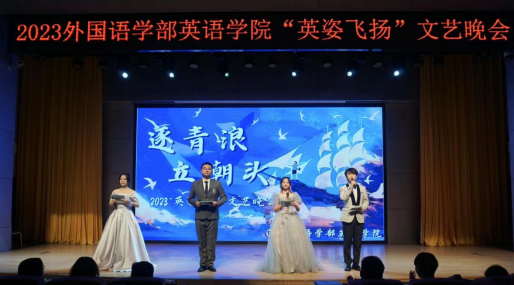 我们所要追逐的,是世界文明交流互鉴的时代浪潮;我们所要勇立的,是中华文化国际传播的潮水浪峰。青年外语人志在青云,更当自信昂扬,于世界舞台之上讲述好中国故事,传播好中国声音。斯如本次晚会的主题,我们逐浪前行,无畏浪涛的汹涌,勇立潮头,展翅高飞;我们言传华夏,推动文化的交融,勇担使命,熠熠生辉。