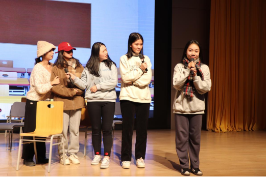 风花雪月皆成趣,文化交流倍添情。由周芳瑜、林思彤、薛雨晓等同学带来的原创小品《几个节目》,讲述了国际中文班上的种种趣事。欢笑之余,诸君可见青年外语人对传播中华文化的孜孜追求,可见当代中国学子“心苟至公,天下大同”的丹心赤忱,亦可见语言的多彩魅力与文化的和谐交融!