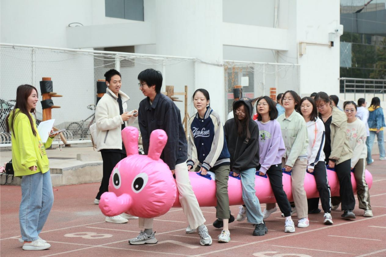 在同心鼓和毛毛虫竞速的赛场上,同学们团结合作、齐心协力。一步一动中体现着同学们相互之间的深厚友谊与难能可贵的团队精神。
