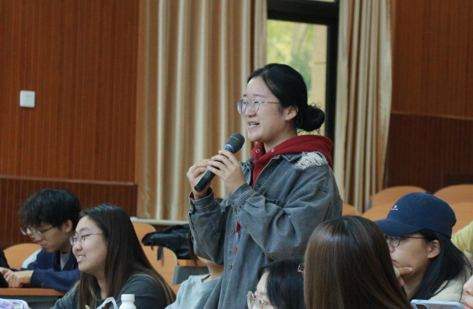 在答疑环节,刘雯婷学姐还回答了同学们提出的诸多问题,包括如何高效使用所搜集到的资料、如何走出高考思维模式的桎梏等。现场同学积极思考,诚恳求教;雯婷学姐耐心解答,真诚分享,现场互动气氛热烈。