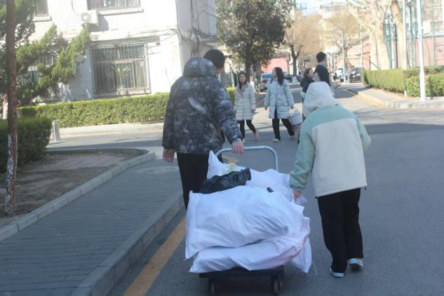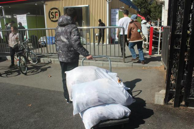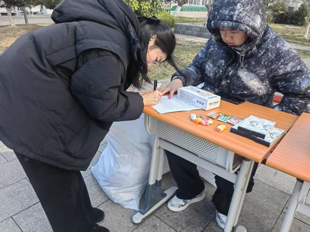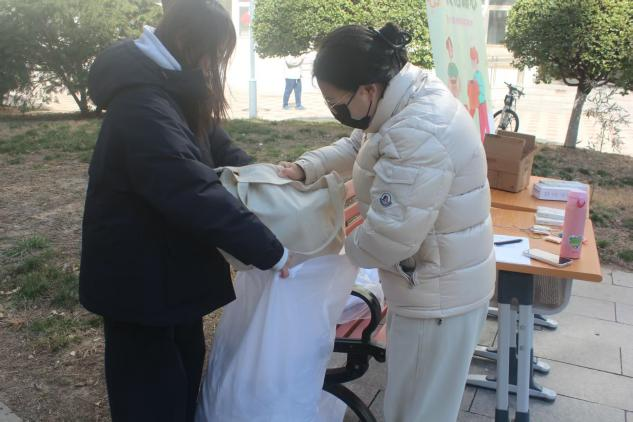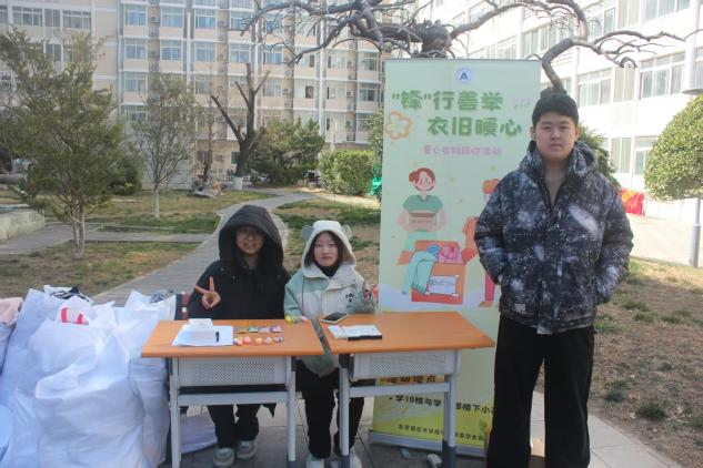 在回收活动期间,工作人员在学10、11楼楼下的小花园设立了固定的回收站点,许多同学纷纷带着整理好的衣物前来捐赠,有保暖的棉衣、时尚的外套以及干净的T恤。工作人员热情地接待每一位同学,认真登记捐赠者的信息和衣物数量,并向他们发放小礼品,同时对捐赠的衣物进行分类整理。同学们积极踊跃地参与其中,尽己所能地献出自己的爱心。工作人员分工明确,各司其职,整个活动现场秩序井然,回收工作得以顺利进行。