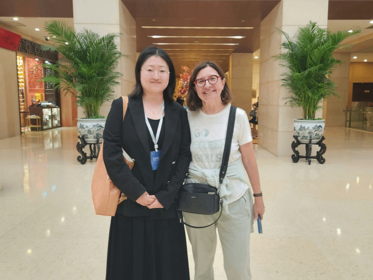 图为王梦琦同学与路易莎·普鲁登蒂诺女士的合影
