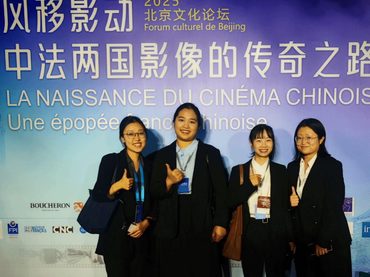 9月23日至24日,由中共中央宣传部、北京市委市政府共同主办的2025北京文化论坛在京举行。作为论坛亮点活动,特别策划的“风移影动——中法影像对话”系列活动于9月22日至24日举办,特邀法国前总理拉法兰(Jean-Pierre Raffarin)领衔的法方代表团与中国电影、文化界代表共话光影百年。在英高院王茜老师的带领下,法语口译专业研二学生王馨梅、王梦琦、袁柳灿、黎心阳共同参与了法国代表团的陪同口译志愿服务工作,耿菲阳同学参与了“光影百年·中法同行”电影音乐会现场同传的场务服务工作。在此次高规格的文化外事活动中,法语口译系的师生协力,在服务国家人文交流、促进中法文明互鉴的进程中贡献出自己的力量。