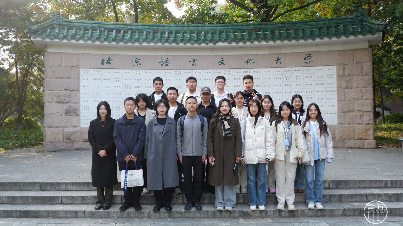 活动在秋日暖阳中拉开帷幕。在北语同学的热情带领下,中国人民公安大学校会代表们开启了一场校园探索之旅。从南门行至梧桐大道,途经操场、图书馆,最后抵达体现北语“小联合国”特色的万国墙,公大代表切身感受到了北语深厚的人文气息与历史底蕴。参观尾声,双方在万国墙前合影留念,定格了见证两校友谊的美好瞬间。