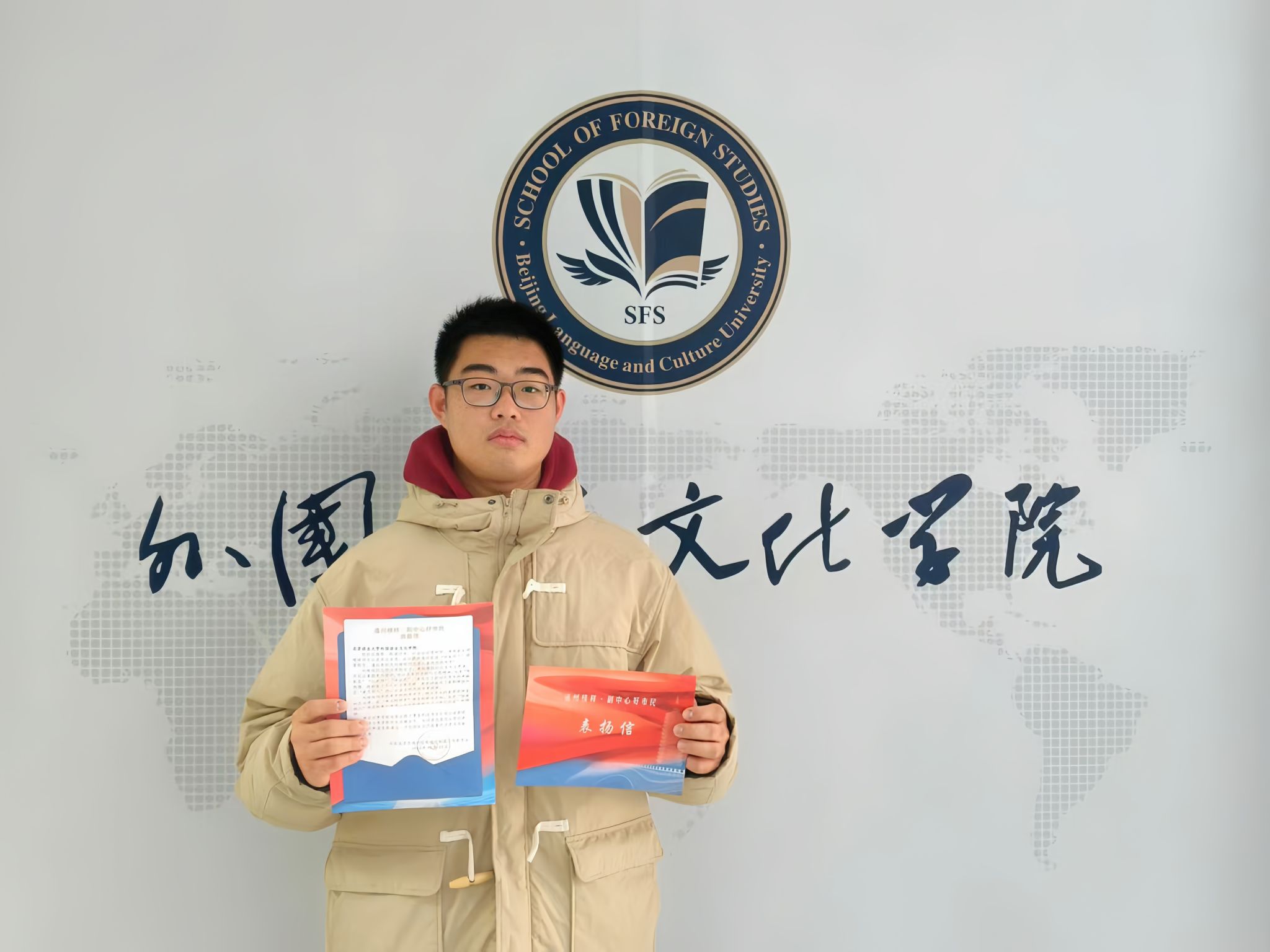 从社区服务到大学课堂,从“邻家好人”到北语学子,他的每一步成长,都印证着新时代青年的责任与担当。我们坚信,今日扎根于心的服务精神,将成为一粒饱满的种子,激励他在“德语+木材科学”的专业学习砥砺深耕,书写出更多服务社会、贡献国家的精彩篇章!