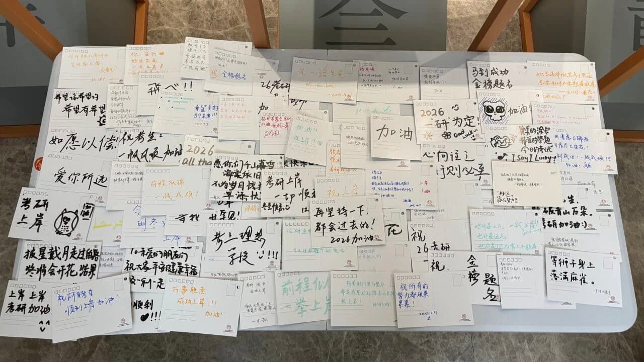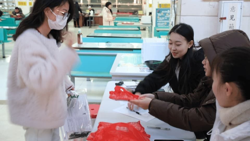 活动期间,午间与傍晚的暖心驿站准时开放,一份份定制暖心礼包备受欢迎,礼包内装满姜茶、暖宝宝等实用好物,为备考学子补充能量。驿站内的留言板上,密密麻麻写满了同学们的祝福,字里行间尽显浓厚的同窗情谊,成为校园里一道温暖的风景线。