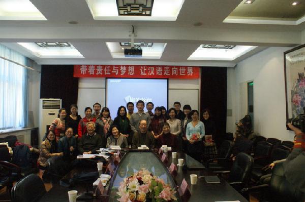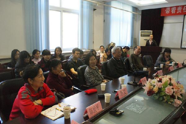 11月23日上午,教四320教室座无虚席,由我校关心下一代工作委员会(以下简称“关工委”)、离退休工作处、人文学院研究生会和研究生团支部联合主办的第八届人文学术月系列讲座——“带着责任与梦想,让汉语走向世界与您相约”在这里举行。此次座谈会的主讲人是关工委的三位德高望重的老师——李忆民教授、李杨教授和李艾教授,参加座谈会的除了人文学院研究生会、团支部的负责人和对外汉语专业的一年级研究生同学外,还有我校离退休处党总支书记兼关工委副秘书长袁丹书记、关工委谢业顺教授、关工委秘书处办公室主任陈世平老师和人文学院的程娟老师、冯惟钢老师、施家炜老师、林建萍老师、余蓝老师、张鹤老师以及2010级汉语国际教育硕士研究生王玉同学。