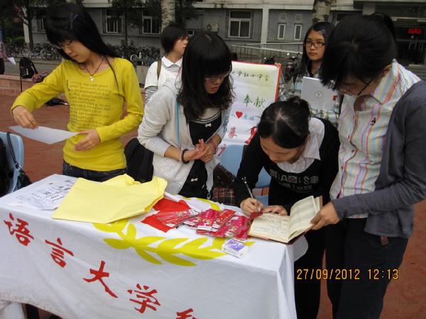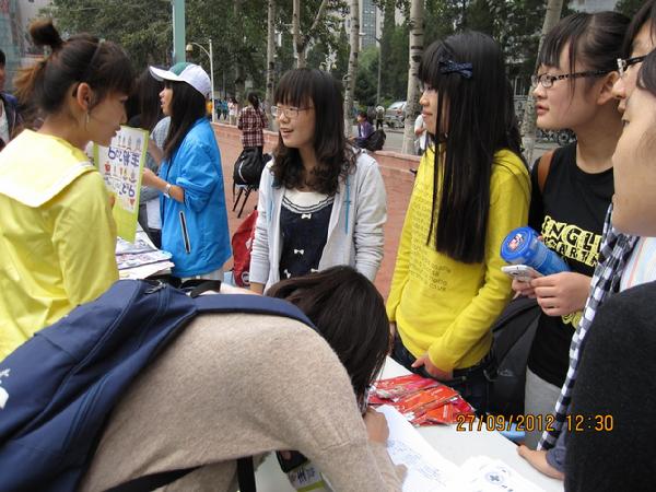 月27日中午,百团大战第二天,红会招募新会员工作继续进行。今天的招新活动仍然得到了同学们的热烈支持,来报名的同学络绎不绝。