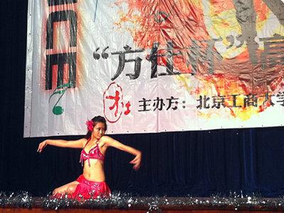 北京语言大学代表队倒数第二个登场,为同学们带来了优美精湛、活力四射的舞蹈。精妙的舞姿让观众赞叹不已,葛莉同学的《舞娘》与曼妙的肚皮舞的绝妙搭配技惊四座,赢得喝彩连连;马丹阳等八人火爆街舞《dance book》热力劲爆,展现了青年人的活力与北语人的风采,博得了全场掌声。北京工商大学嘉华学院最后作为表演节目登场,将现场气氛再次推向高潮。