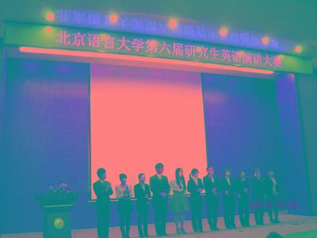 谈变化与否各抒己见,理据鲜明;看超强选手激情飞扬,谁与争锋。11月18日下午,由北京语言大学研究生会学术部主办的第六届研究生英语演讲大赛在逸夫报告厅精彩开赛,经过初赛选拔出的九位选手在此登台角逐。本次大赛邀请到了外国语学院英语系主任张威老师,副主任王秋生老师,王冲老师,以及外教Sebastien、Paul担任评委。研究生院副主任刘现强,研究生院赵璞老师、刘洁老师、臧楠老师也到现场观看了比赛。