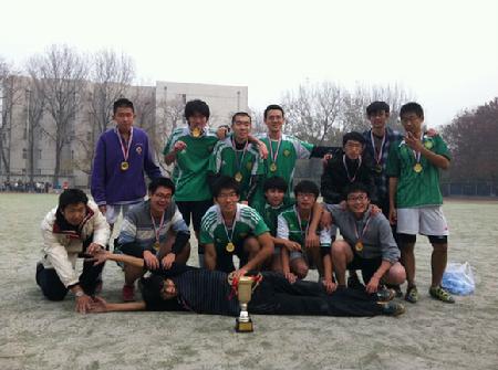 11月16号中午,校足球决赛在风雨操场举行,一路过关斩将杀进决赛的是亚欧一队和阿拉伯语队。