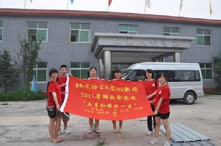 其中,在印染车间,队员们和工作人员一起顶着四十摄氏度的高温在一块红色的布上印上了“北京语言大学2011暑期社会实践09新闻‘五星红旗的一生’”等字样,并在旗帜的下方用毛笔亲手写下了各自的名字。