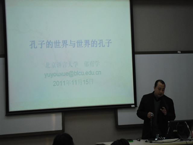 你知道孔子是个什么样的人吗?你知道到底什么是“孔子的世界和世界的孔子”吗?2011年11月15日下午,由校研会博士部主办的“儒学再出发”系列讲座的第一讲——“孔子的世界和世界的孔子”在主南201教室如期举办。此次讲座由北京语言大学党委组织部部长、副教授郁有学博士主讲。研究生院副主任刘现强老师,培养办赵璞老师和臧楠老师也参加了此次讲座。